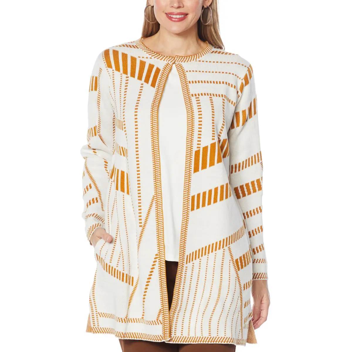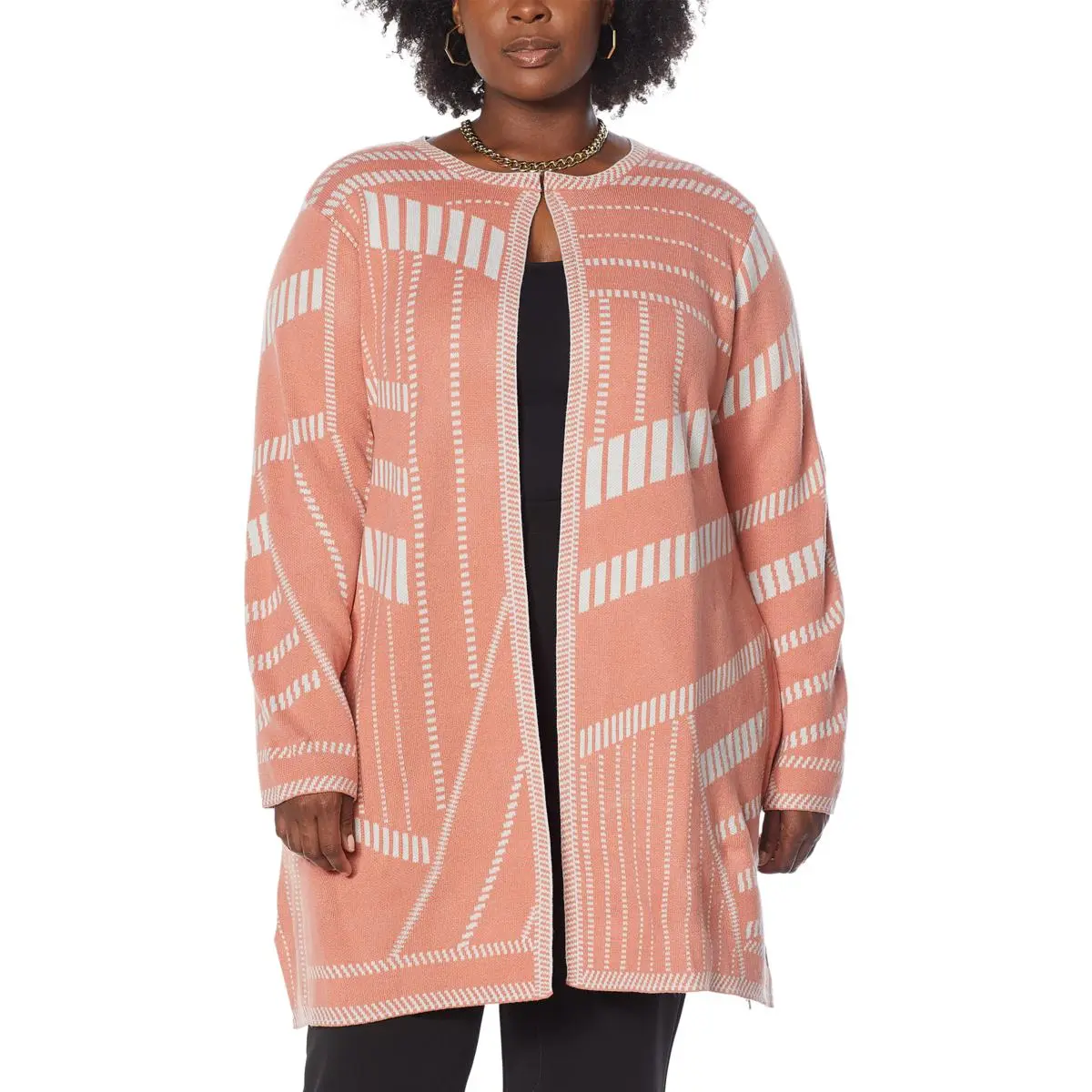 Antthony Geometric Jacquard Topper Soft jacquard knit with a chic geometric pattern updates this classic topper with cold-weather style.