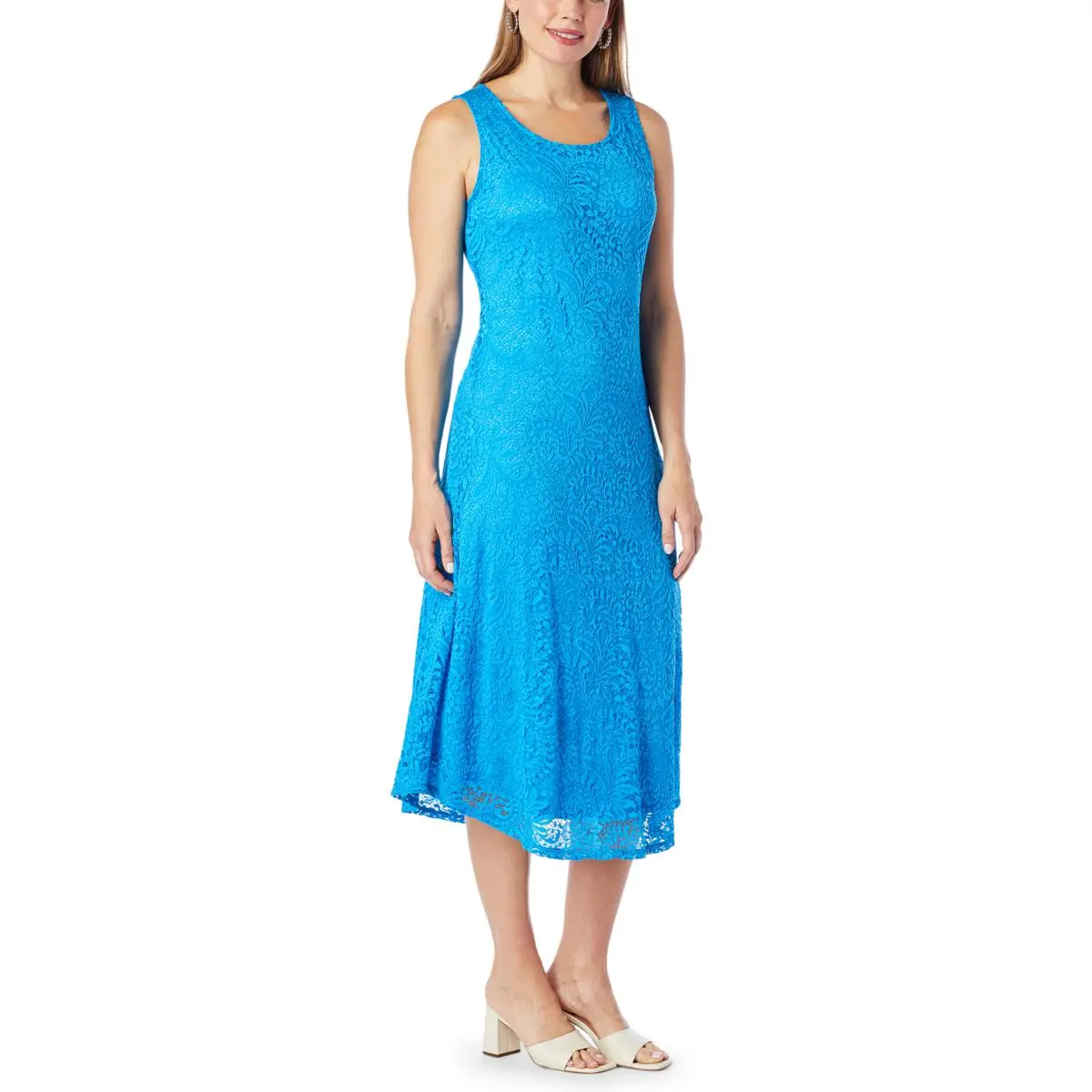 Antthony Lace Tank Dress From beach to boardwalk, this cute and comfy tank dress flows with soft, stretch lace knit and flattering hi-low, shirttail hem.