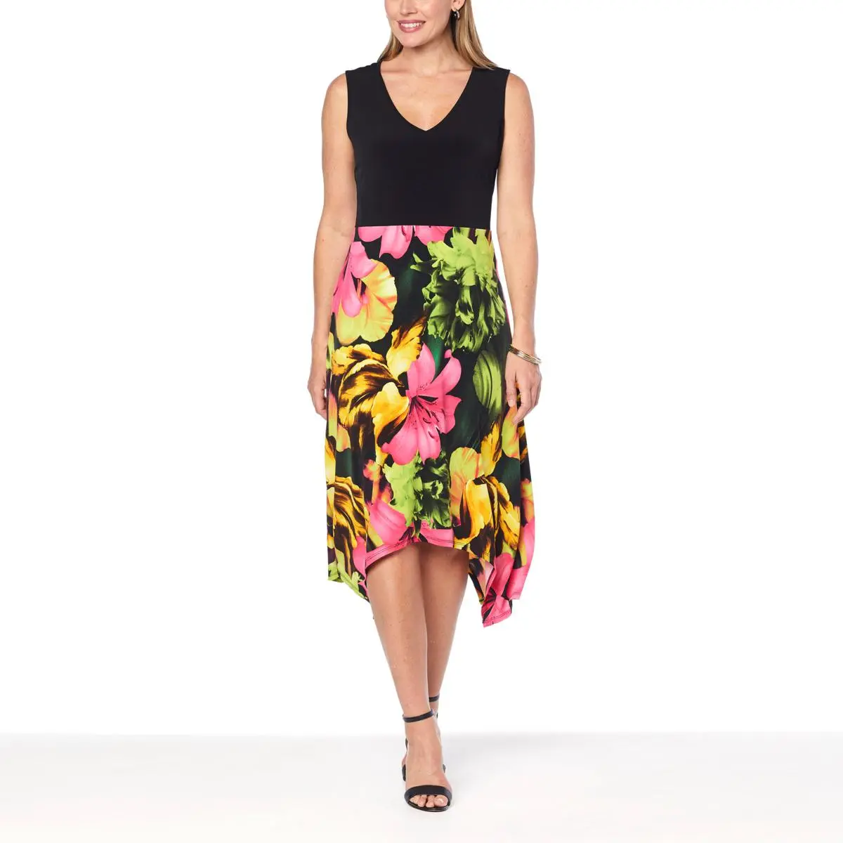 Antthony Sharkbite-Hem Dress with Printed Skirt This workday-to-weekend all-star can be dressed up with statement shoes and a printed scarf or toned down with a pair of fashion sneakers or flip flops. Either way, the printed skirt will be a stylish standout.