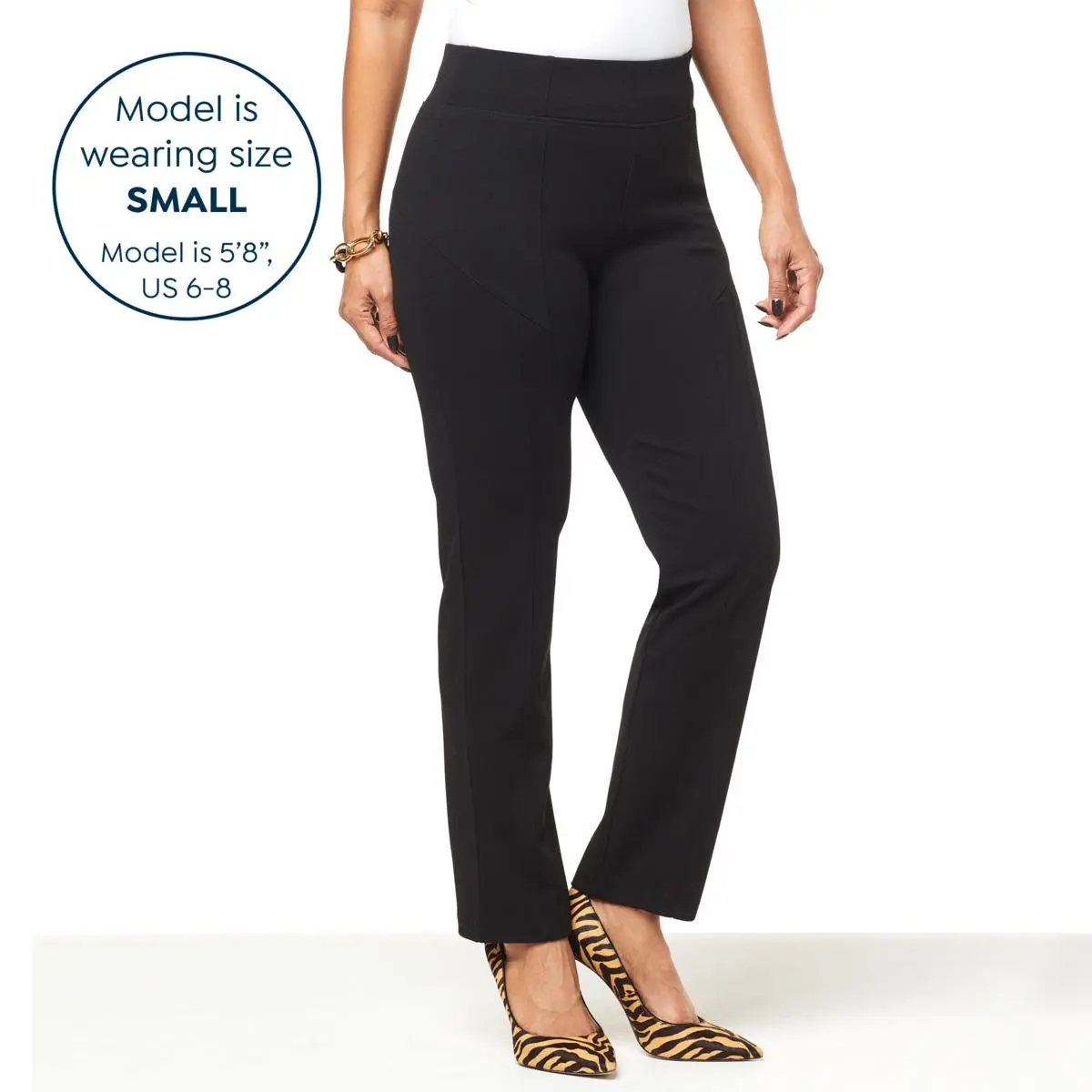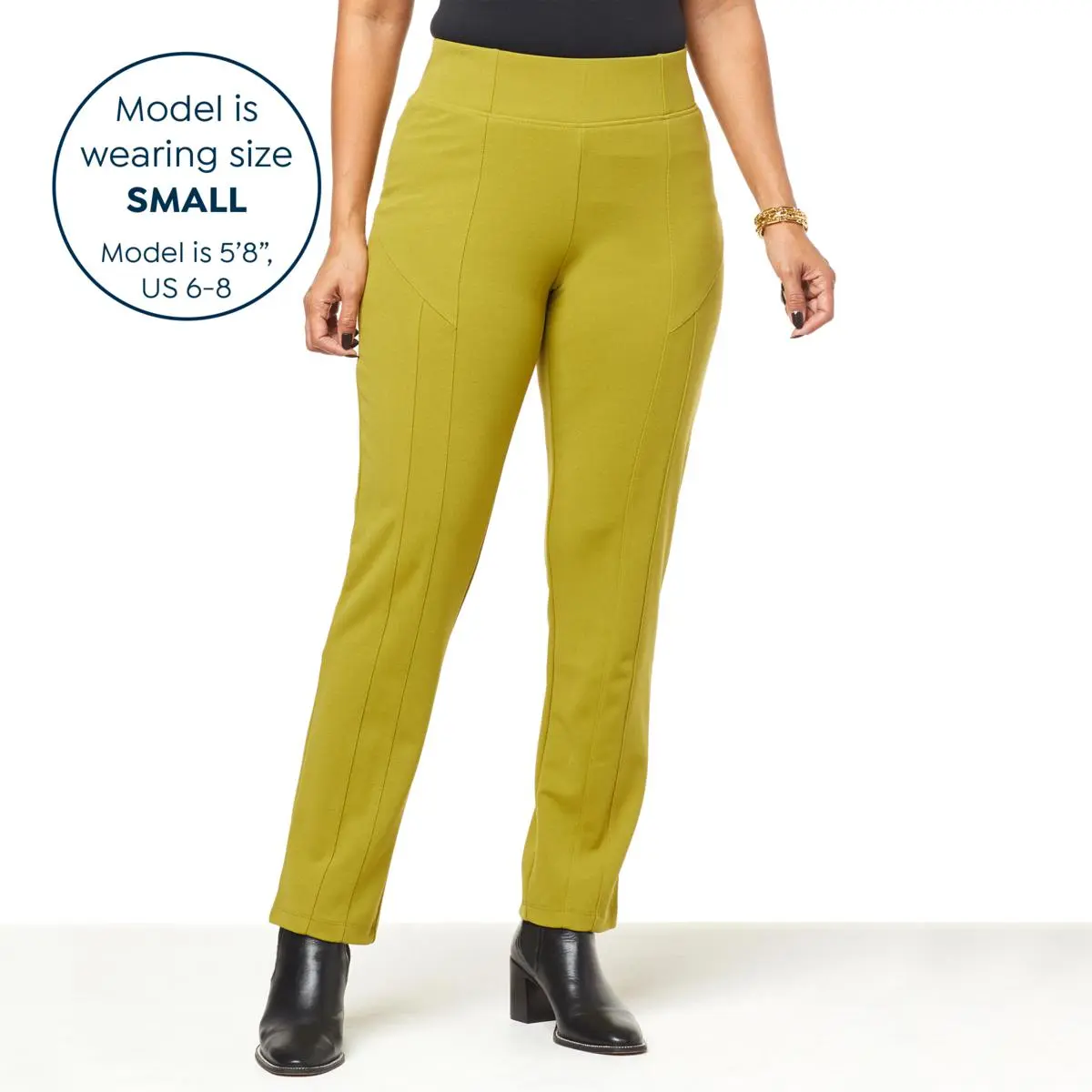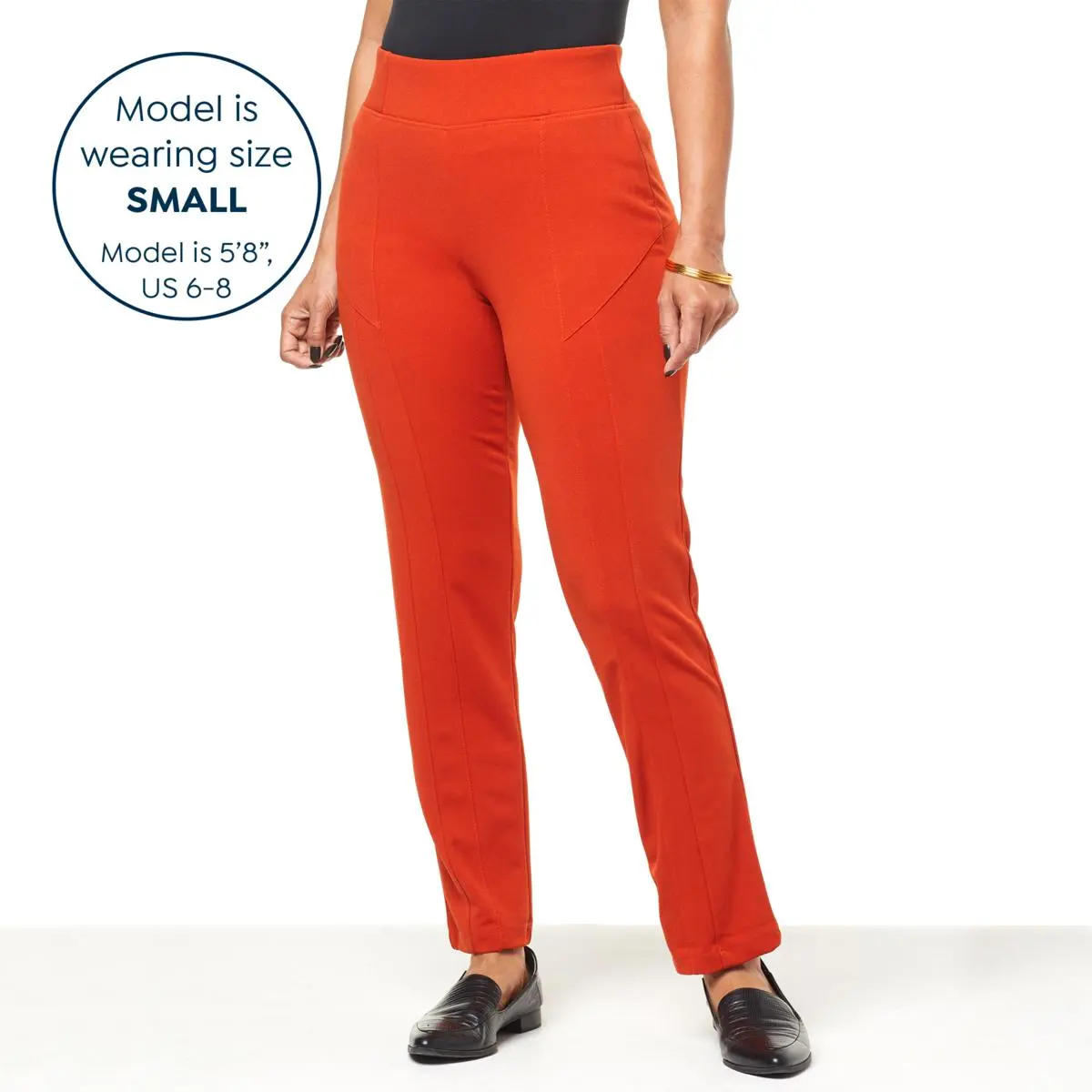 | Leg Type | Straight with edge-stitched center seam from waistband to hem and edge-stitched front leg seam from panel seam to hem |