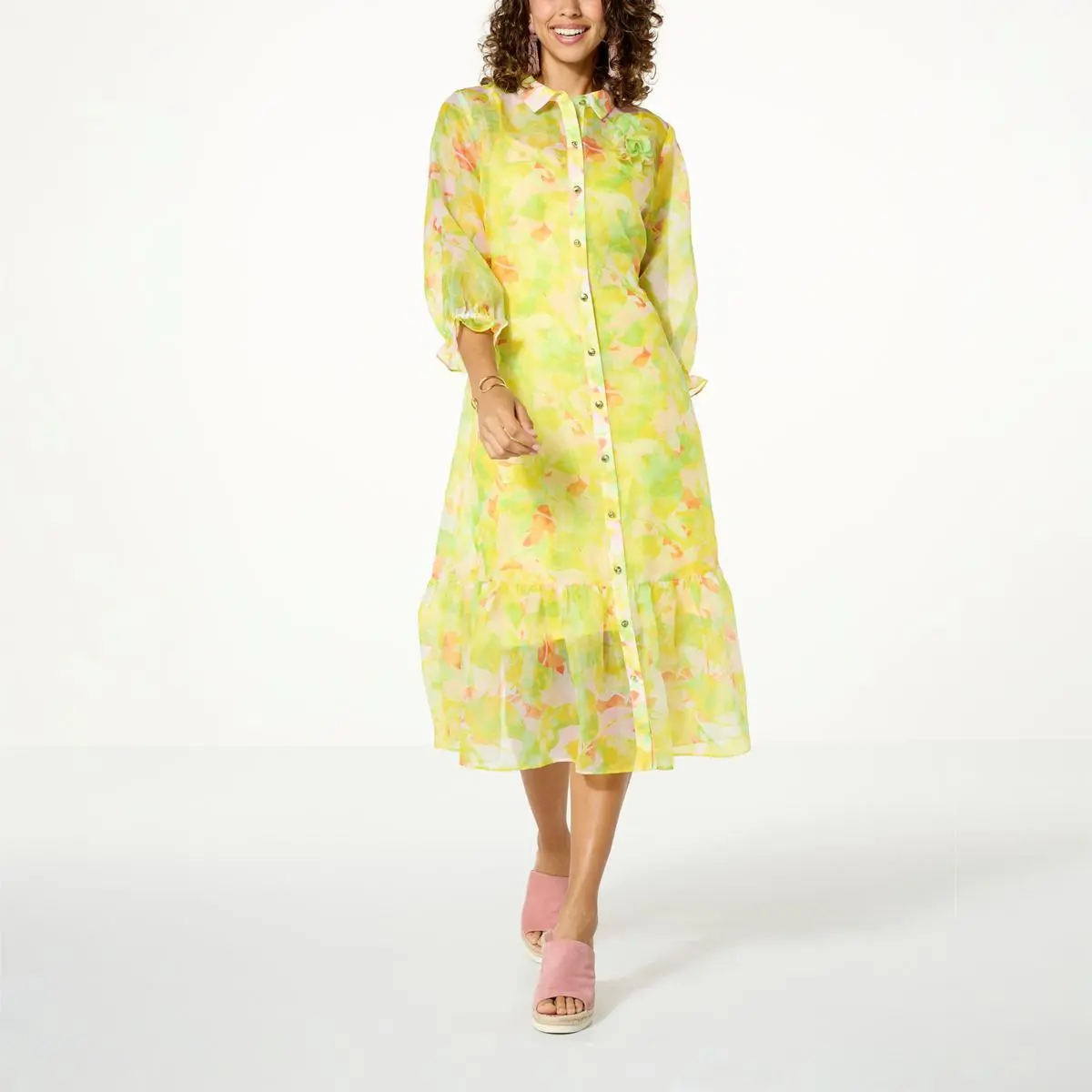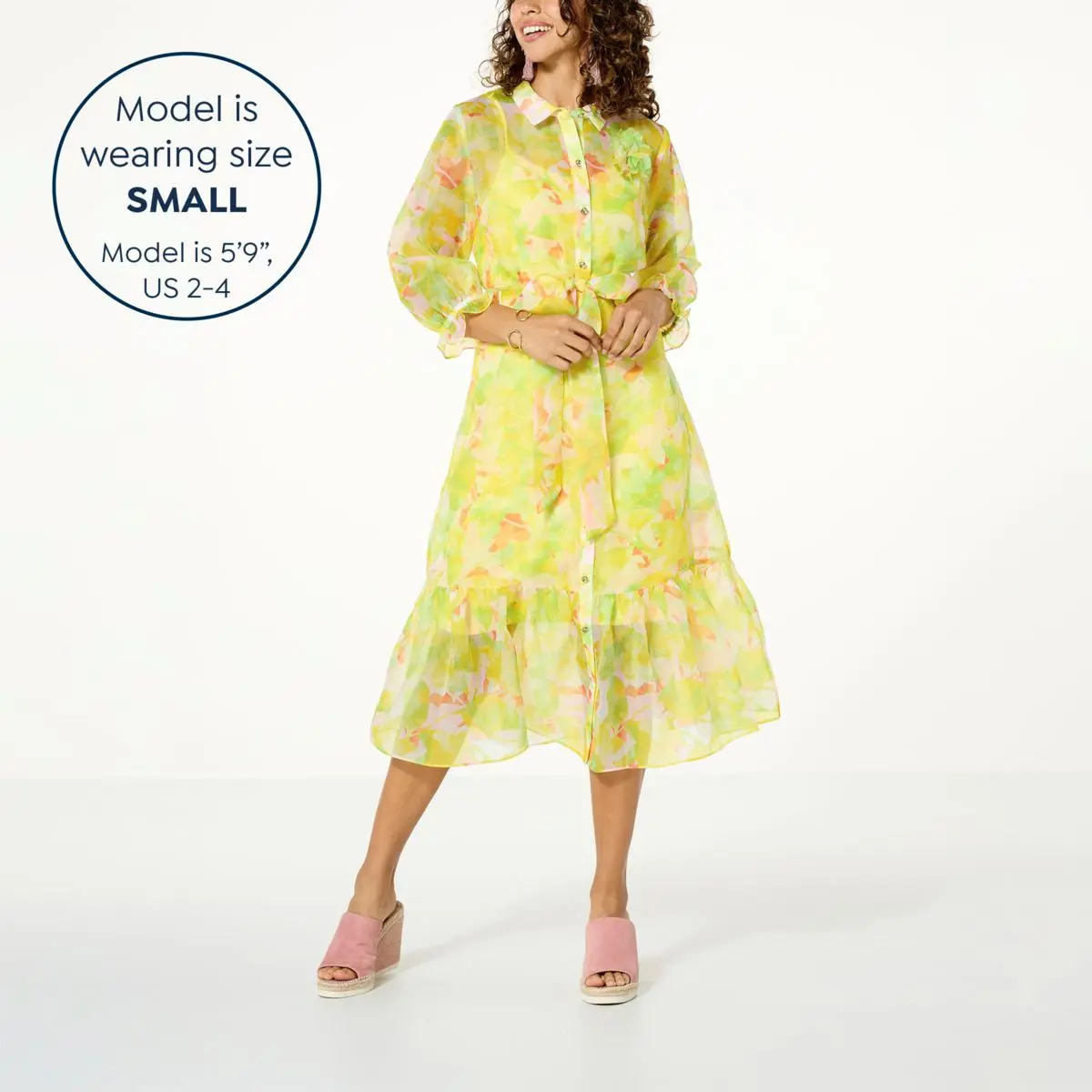 C Wonder by Christian Siriano Organza Button-Front Midi Dress This gorgeous, sheer organza midi dress with a detachable slip takes all of the guesswork out of dressing fashionably and comfortably, whether you’re headed out on a fancy dinner date, work lunch or wedding.