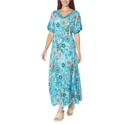 Colleen Lopez Printed V-Neck Maxi Dress The stunning boho florals and figure-flattering silhouette of this classic V-neck maxi dress solves your what-to-wear dilemma from workday to weekend.