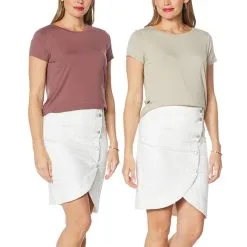 G by Giuliana 2-pack EcoLuxe Jersey Soft Tees Two sumptuously soft tees in must-have colors make styling layered looks a breeze. Perfectly proportioned with a slightly loose fit, they’re a wardrobe builder for all seasons.Â