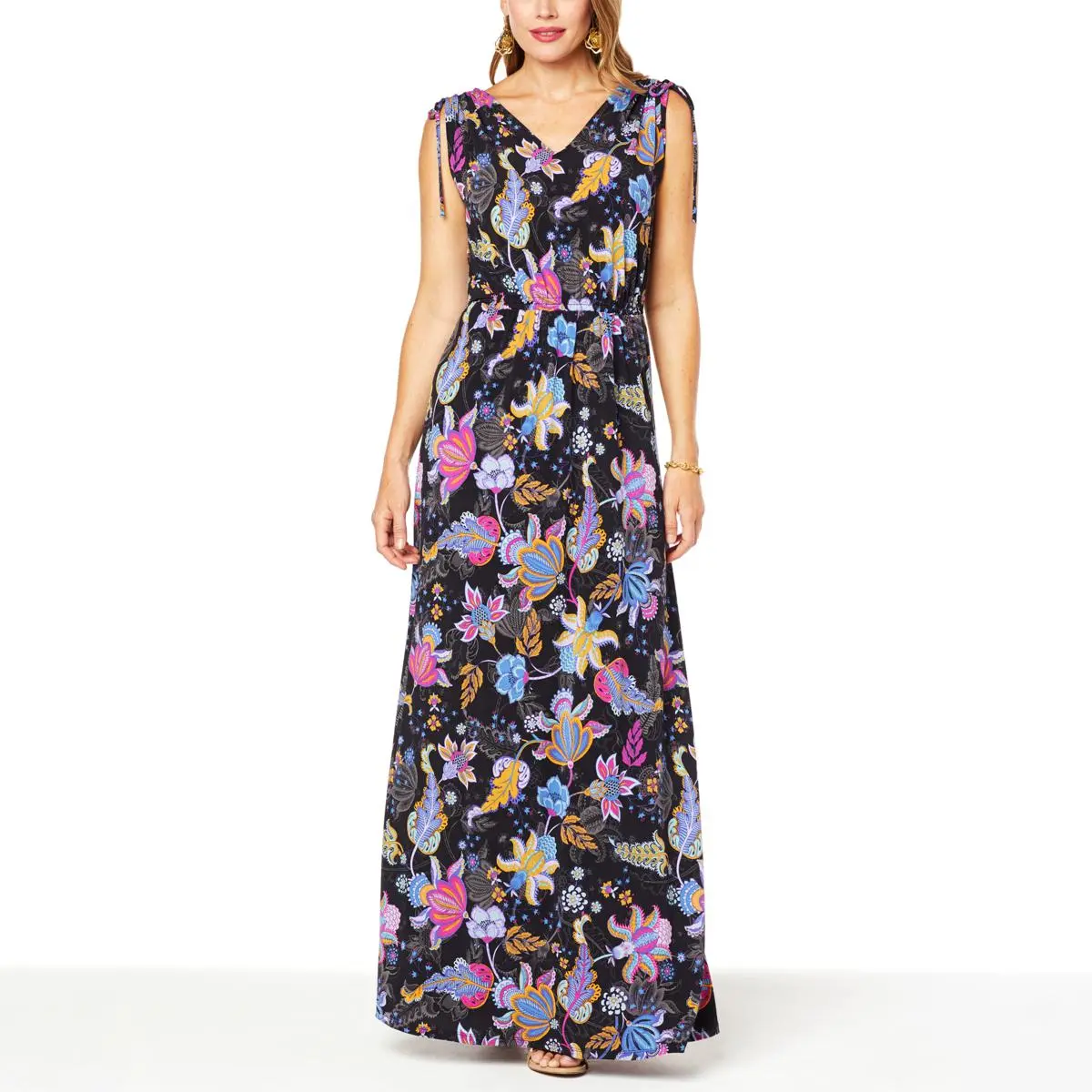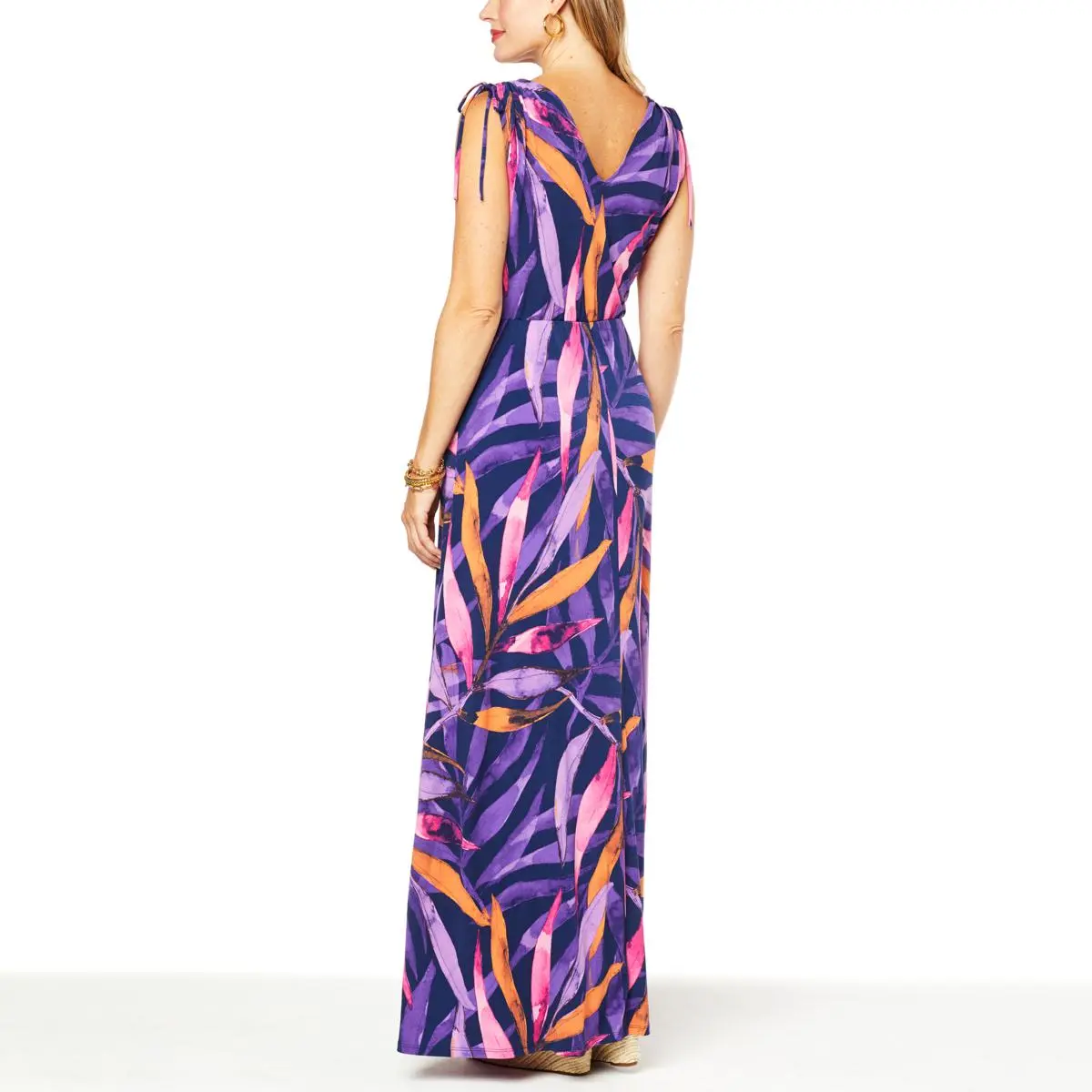 IMAN Global Chic Cinched Shoulder V-Neck Maxi Dress Get a fresh take on Iman’s beloved maxi dress. With its on-trend shoulder cinching and waist-defining detail, this updated version makes a flattering go-to garment for women of all shapes and sizes.