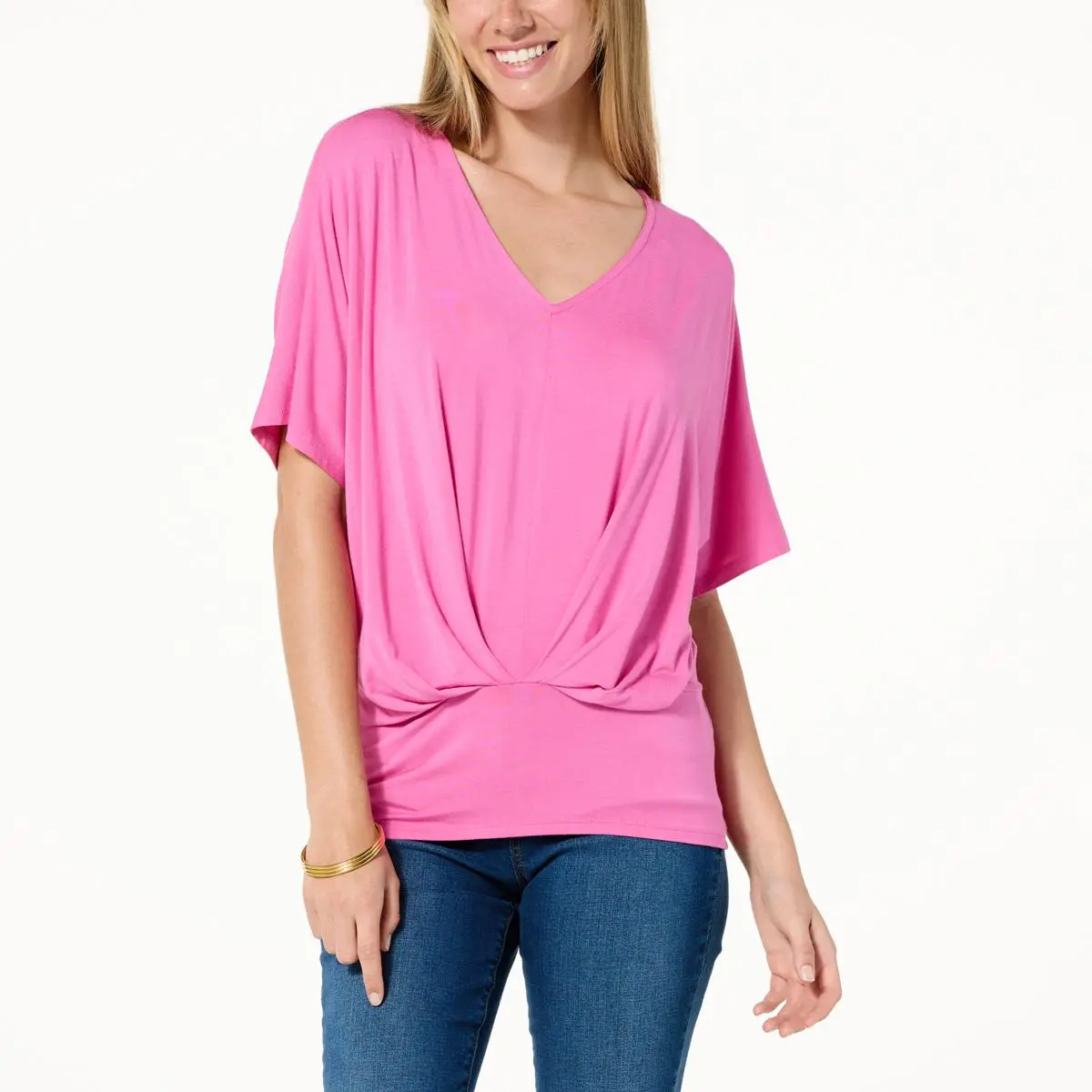 IMAN Global Chic Draped V-neck Top A flattering silhouette and beautiful draped detail come together in this timeless V-neck top that complements any of your favorite bottoms.