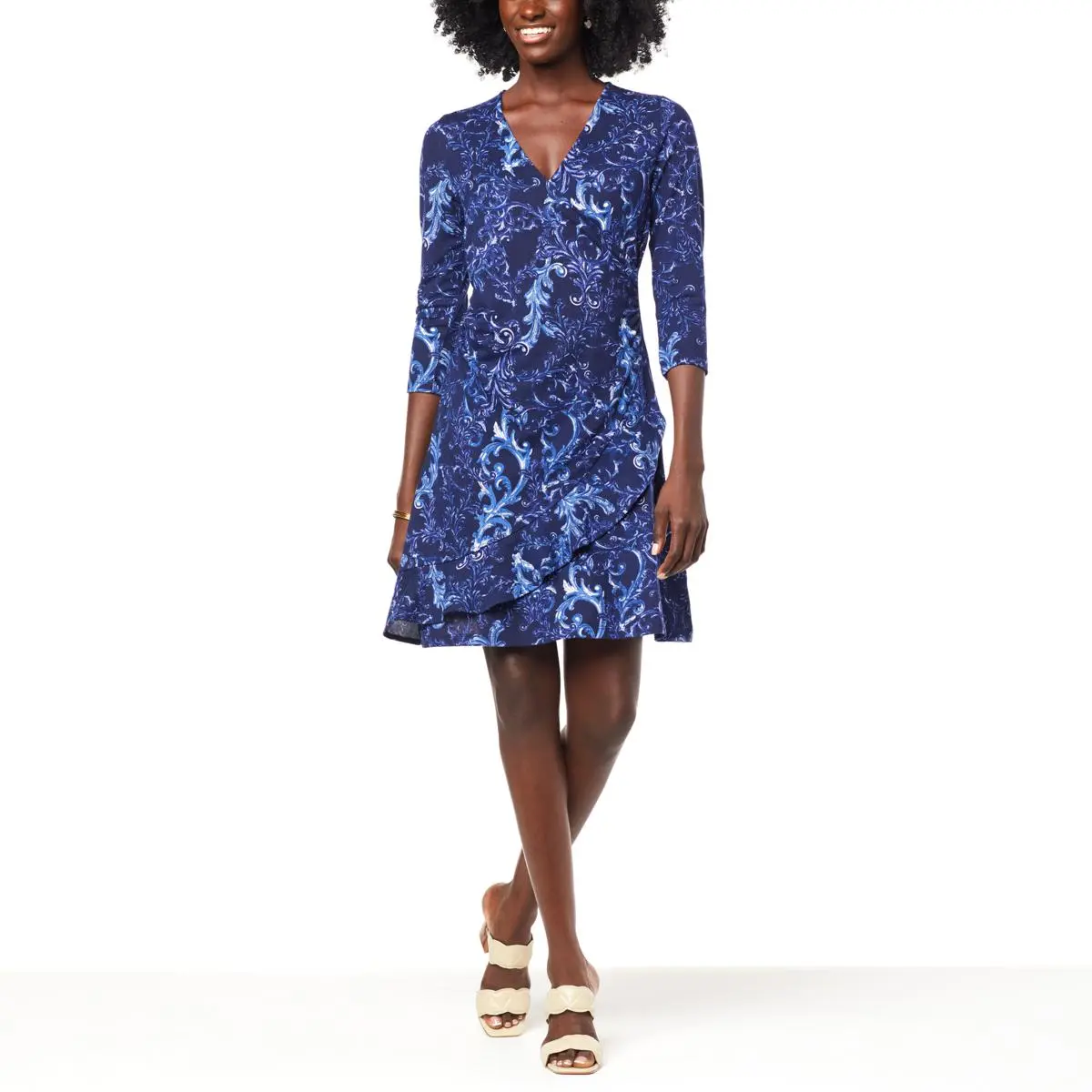 IMAN Global Chic Faux Wrap-Front Dress with Ruffle Detail This flattering ruffle-detail dress features a faux wrap front, adding instant polish to your everyday style.