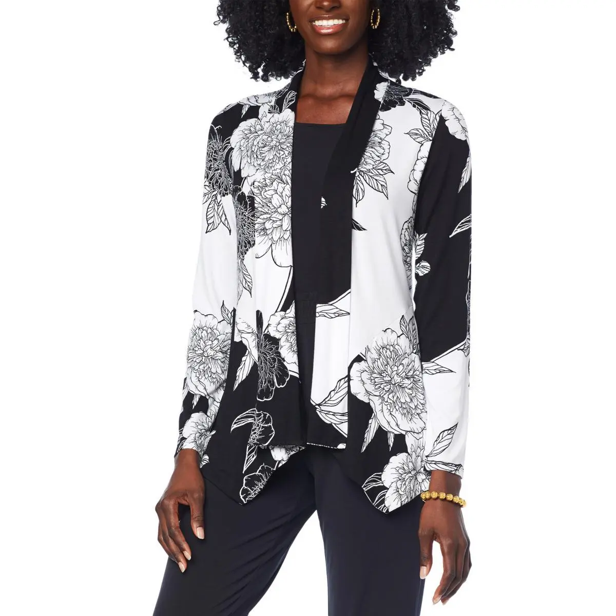 IMAN Global Chic Long Sleeve Angled Hem Topper Add a layer of luxury with this sophisticated angled-hem topper from Iman.