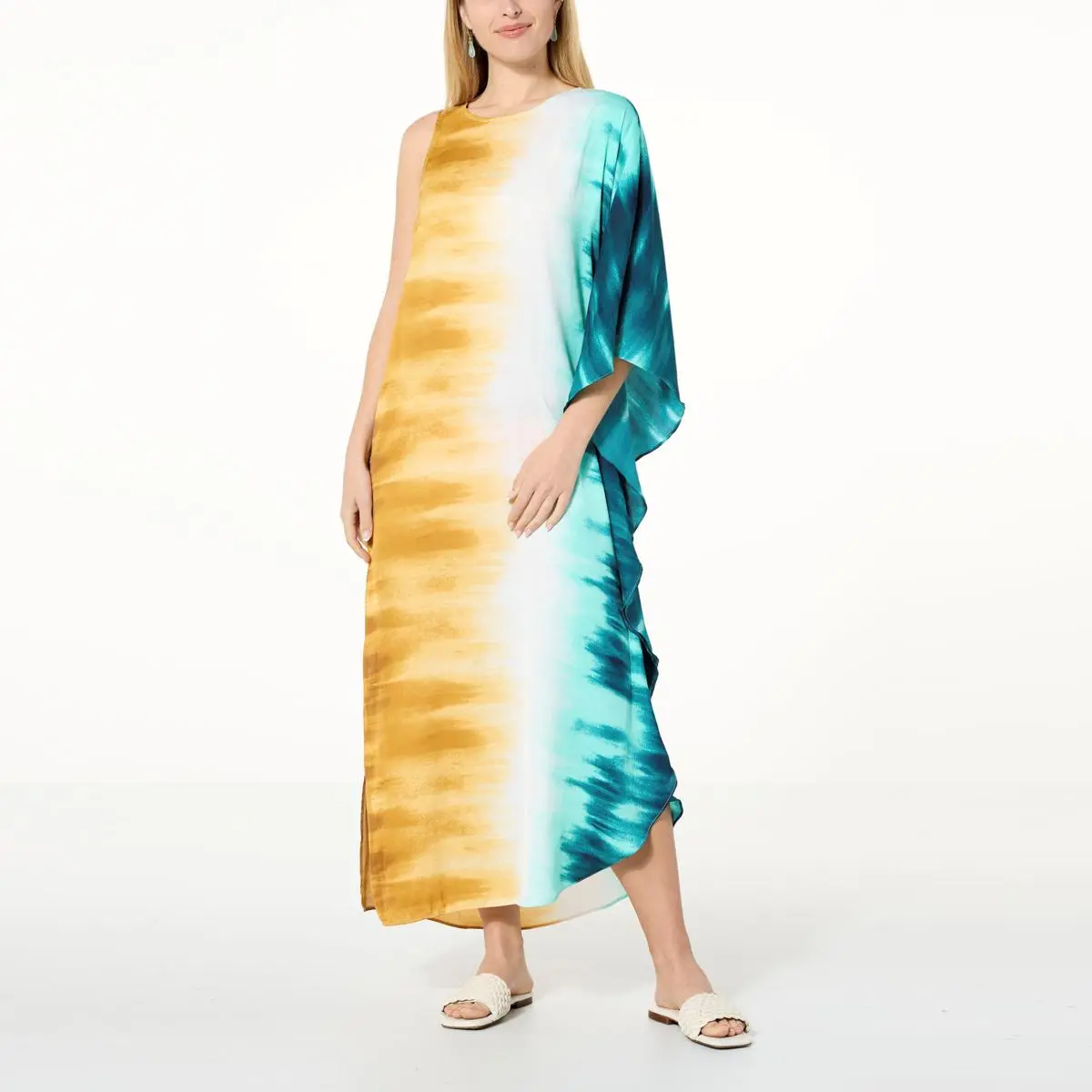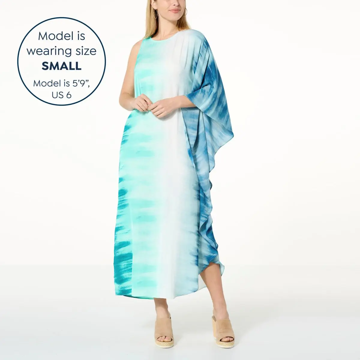 IMAN Global Chic One-Shoulder Flutter Sleeve Maxi Dress Get a fresh take on Iman’s beloved maxi dress. With this on-trend, asymmetric one-shoulder version makes a figure-flattering, go-to day-or-night garment for women of all shapes and sizes.