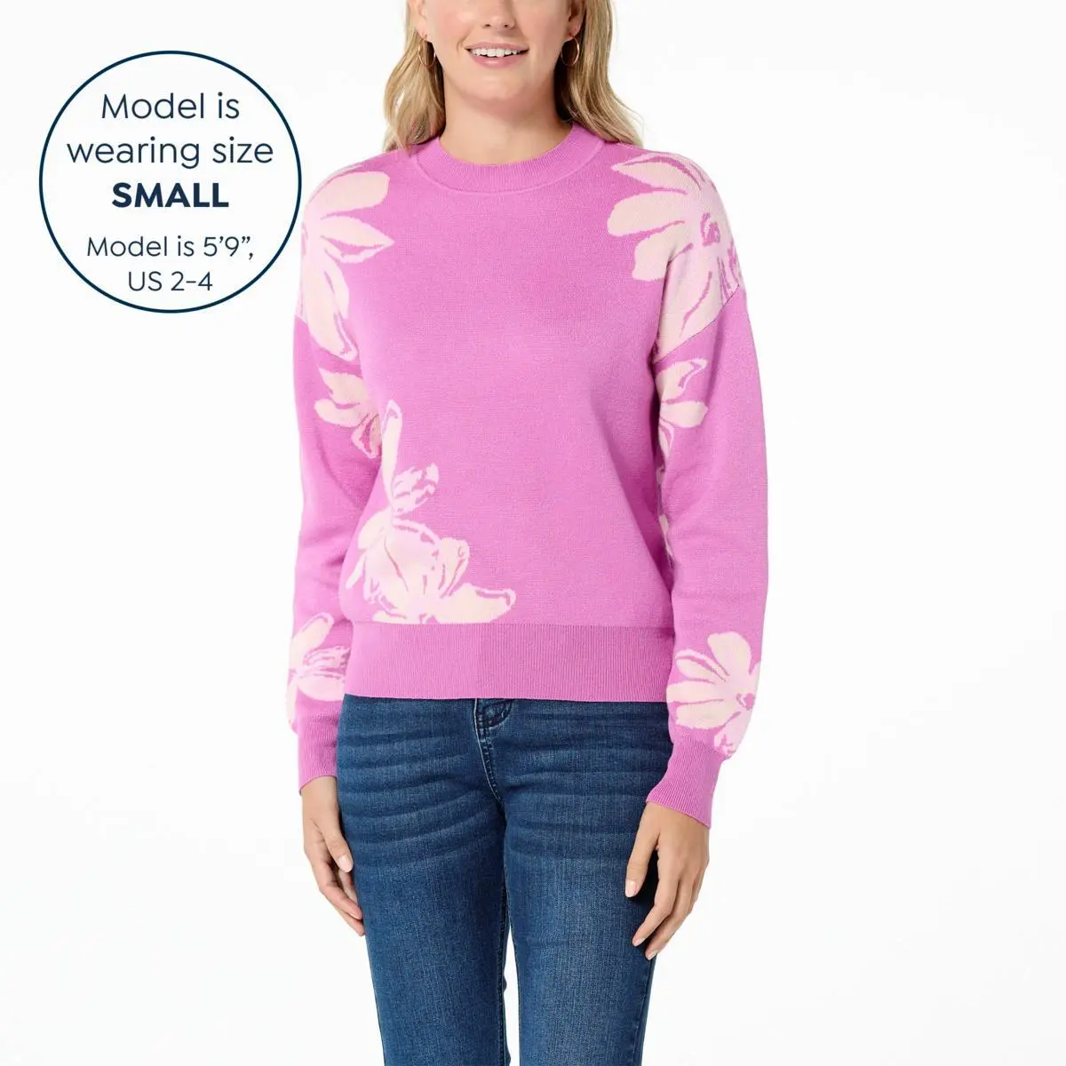 Jaclyn Smith Floral Pullover Sweater Spring forward wearing this gorgeous floral sweater as a complement to your favorite denim pieces.
