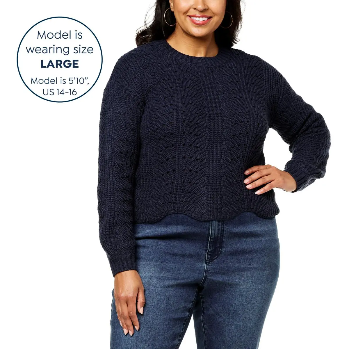 Jessica Simpson Fayette Sweater How sweet! The Fayette sweater has textured patterns and a scalloped hem that gives this look ladylike charm. Get ready for the where’d-you-get-that compliments.