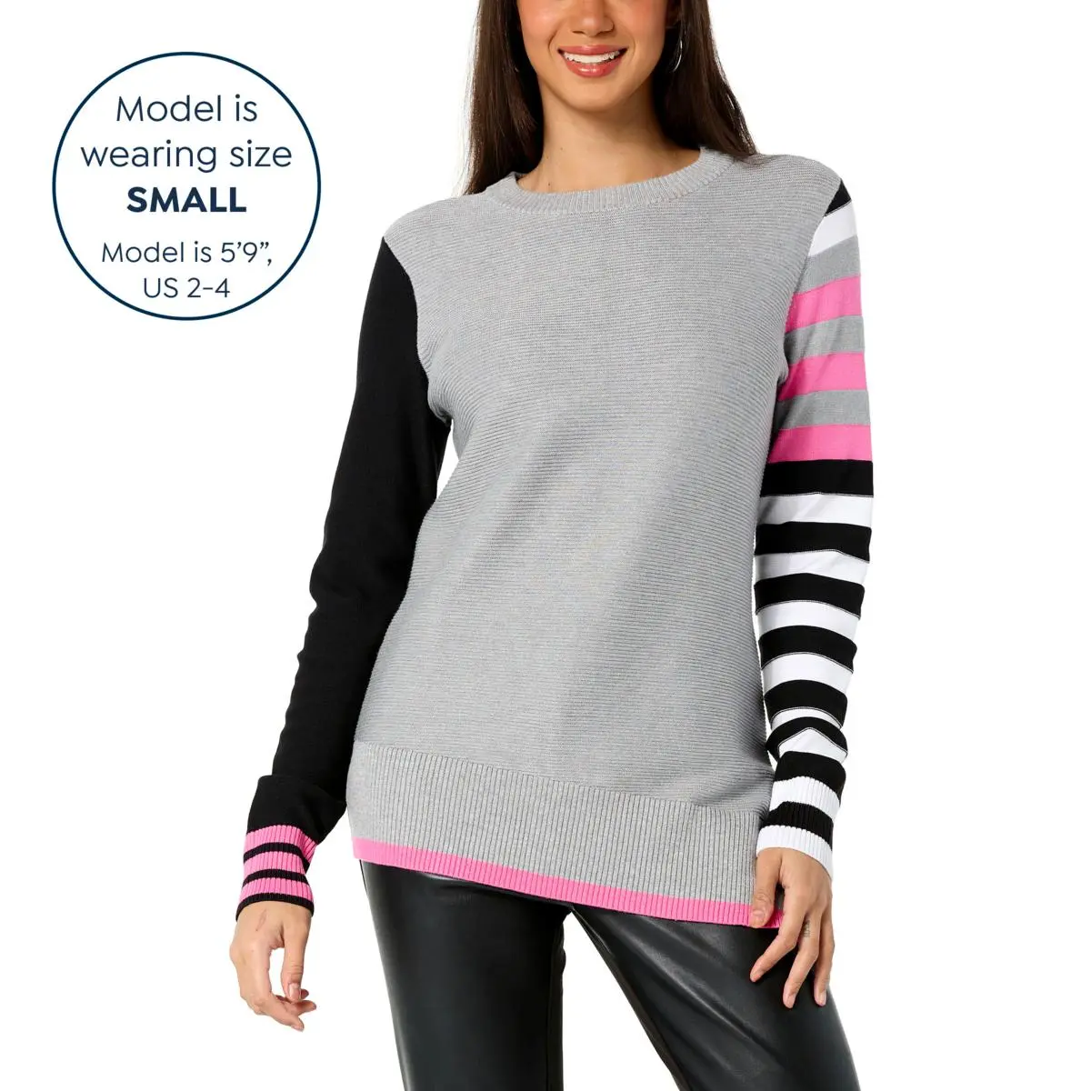 | Neckline | Crewneck; ribbed knit |