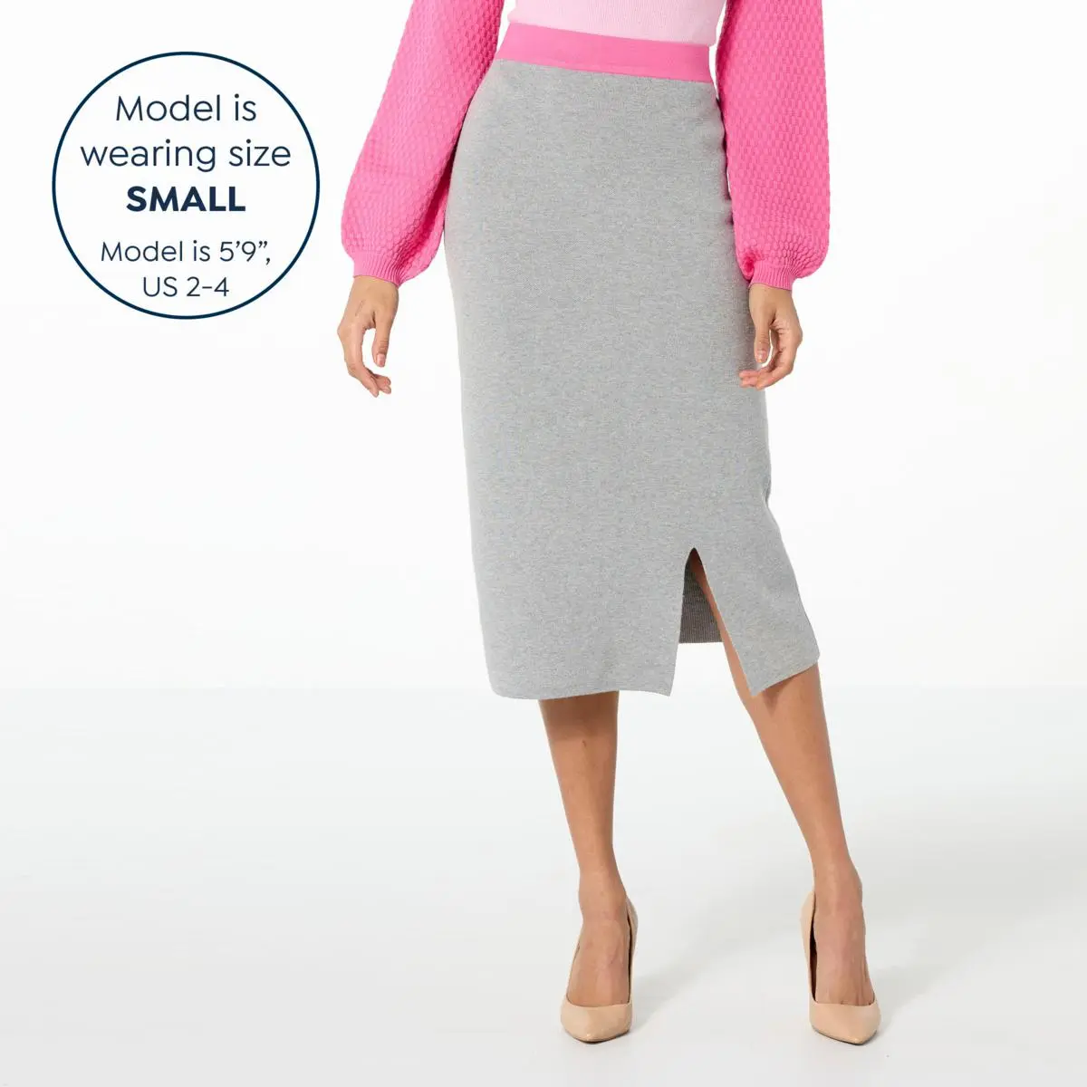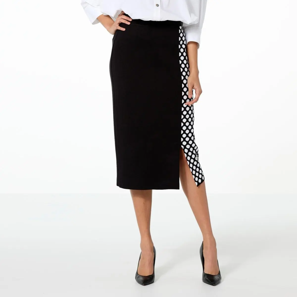 Victor Glemaud Sweater Knit Pencil Skirt The classic pencil skirt silhouette becomes more than just a workday uniform in a super-soft, cold-weather sweater knit and a stand out, side panel polka dot design.
