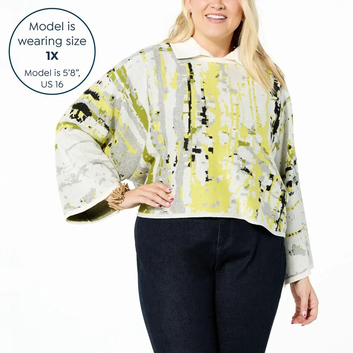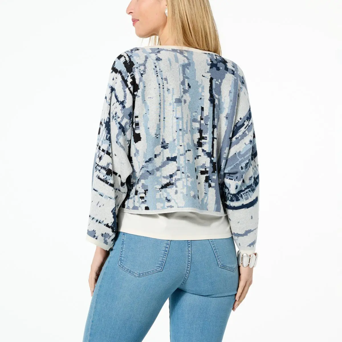 WynneCollection Double Knit Jacquard Popover Sweater Cuddle-worthy softness and a unique, colorful jacquard pattern gives this popover sweater a spot at the front of your cold-weather wardrobe.