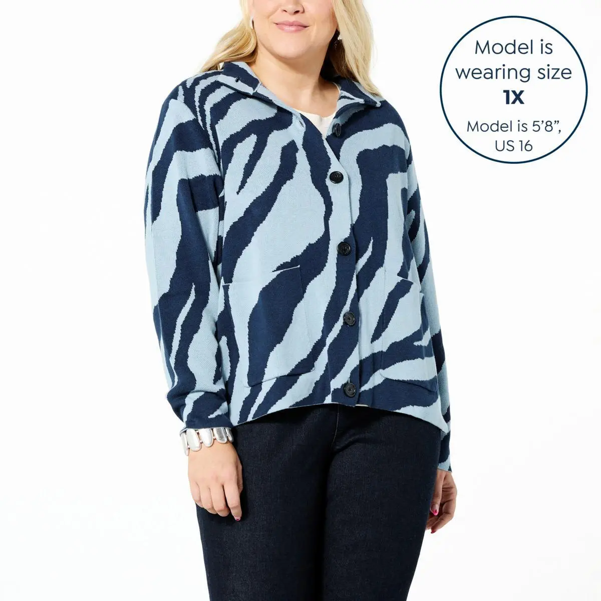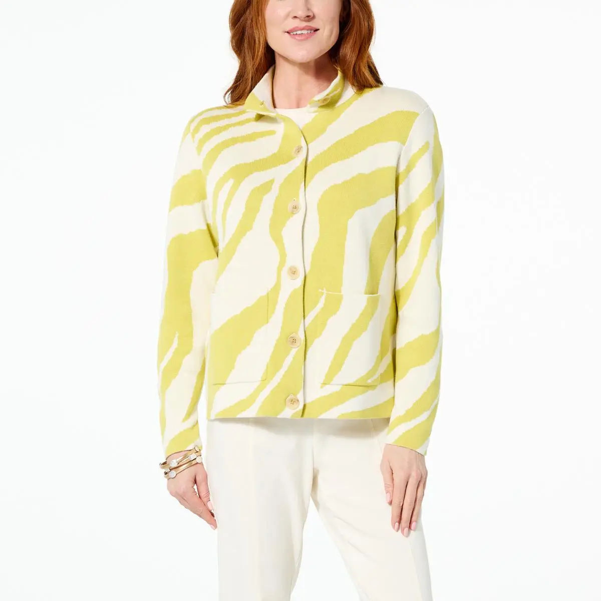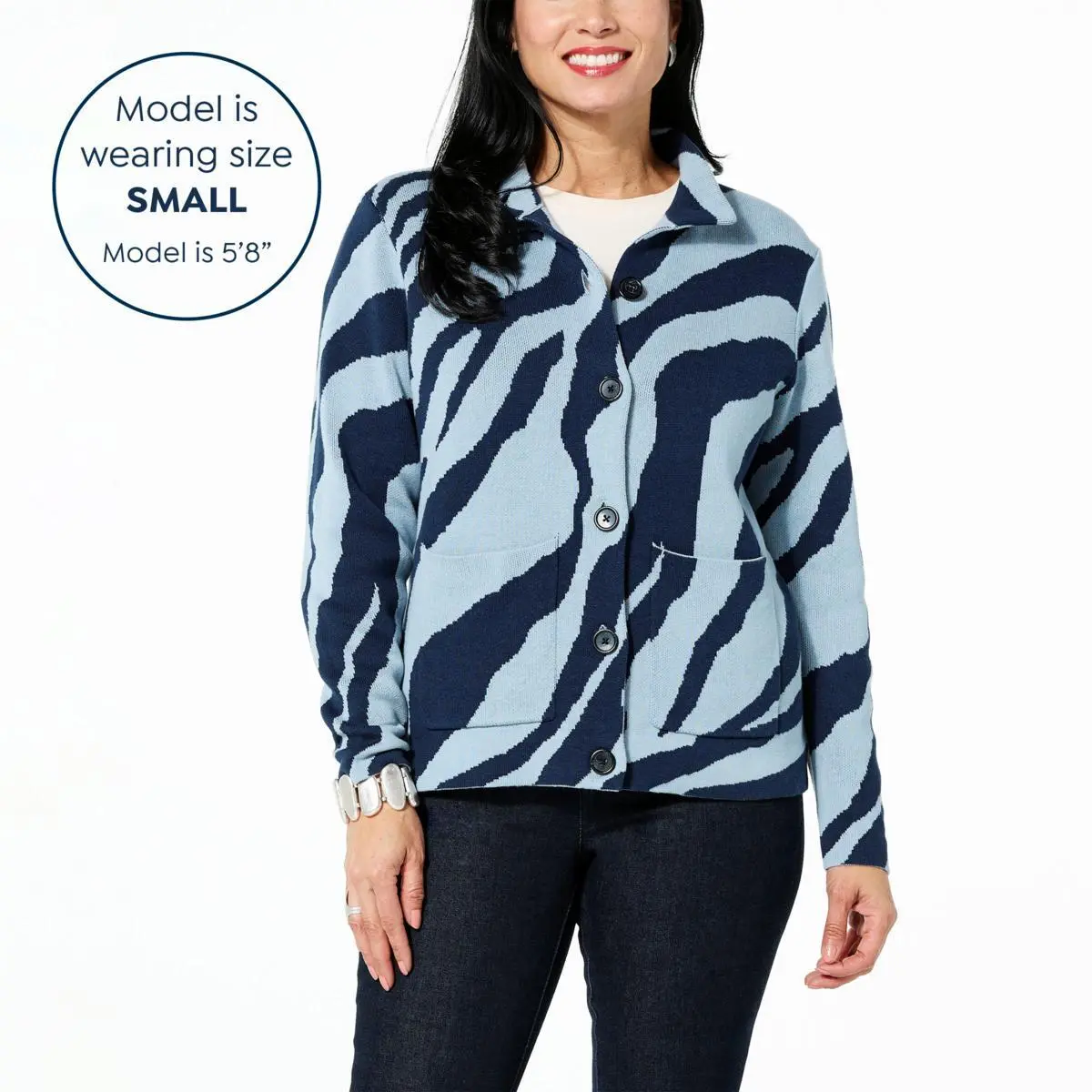 WynneLayers Double Knit Jacquard Button-Front Sweater Jacket From top to bottom, Marla Wynne creates interchangeable pieces that work perfectly together throughout the seasons. This soft, sweater knit jacket is a wardrobe essential.