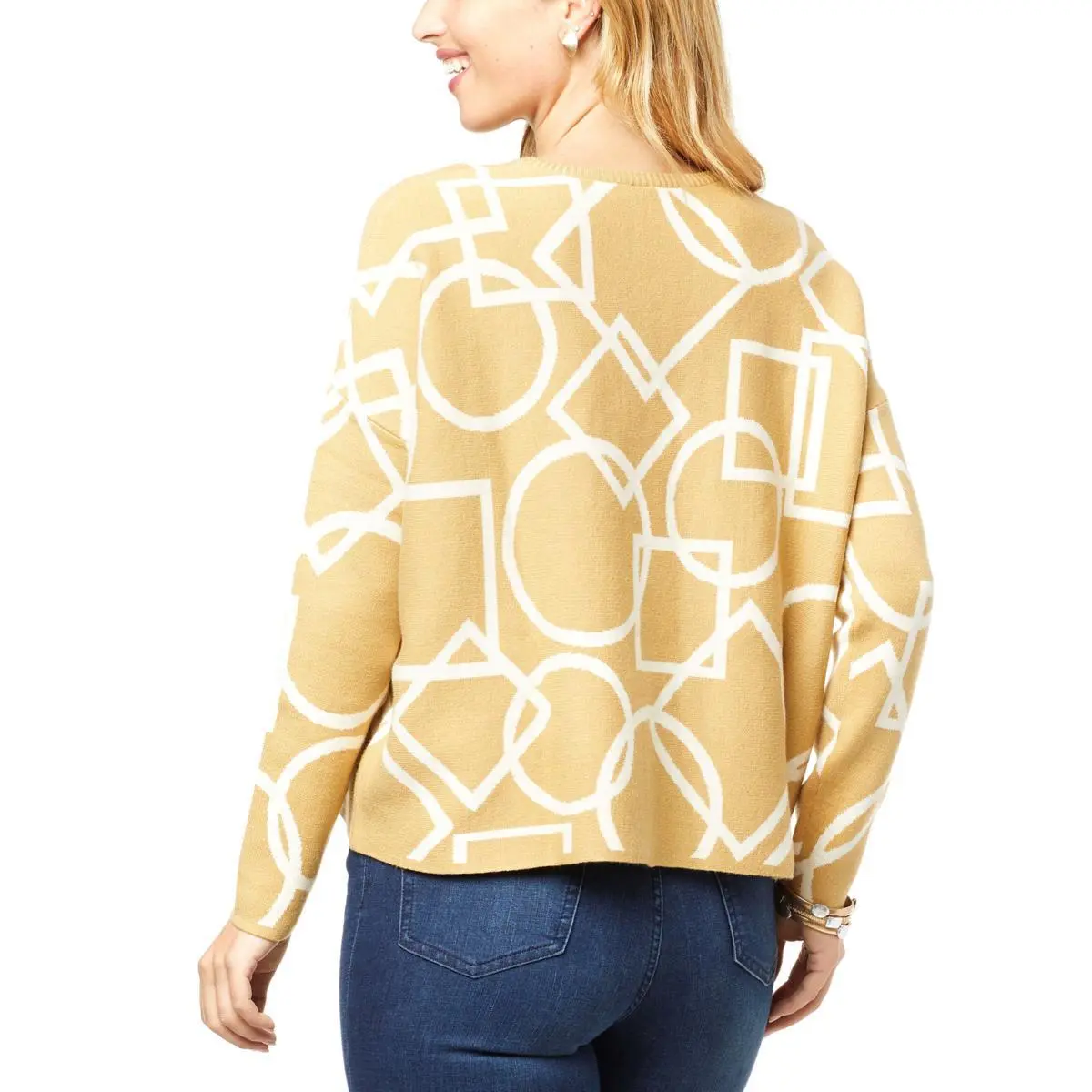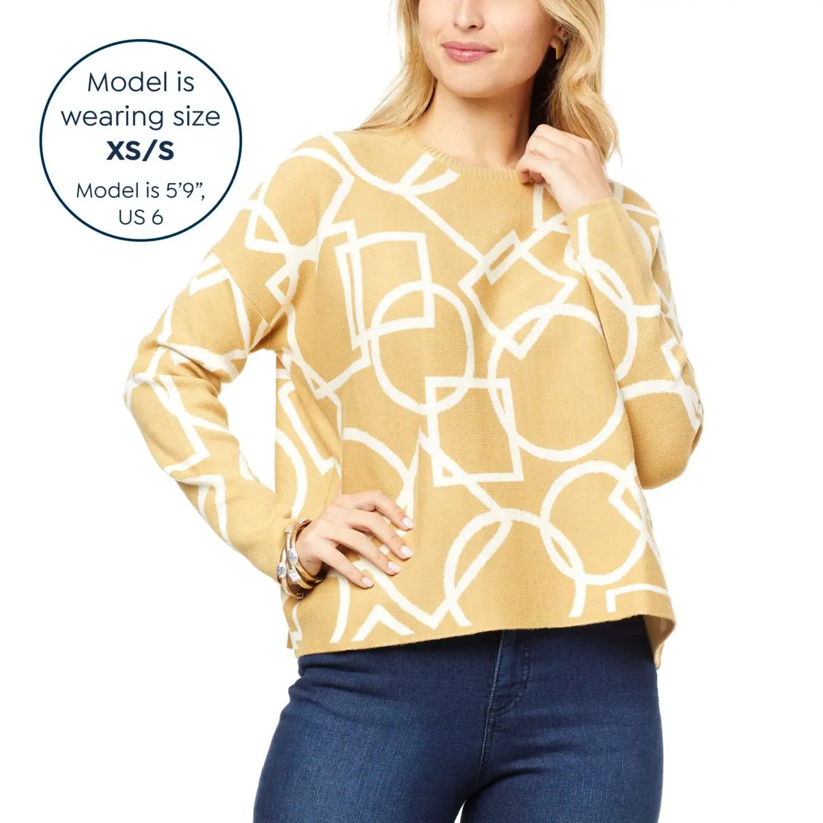 WynneLayers Geometric Pattern Jacquard Knit Cropped Sweater Shape up your wardrobe! This boxy, cropped sweater with a geometric pattern is a layering favorite. Over a Marla Wynne tank and pants or a fitted dress, it’s a fun autumn look you’ll love.