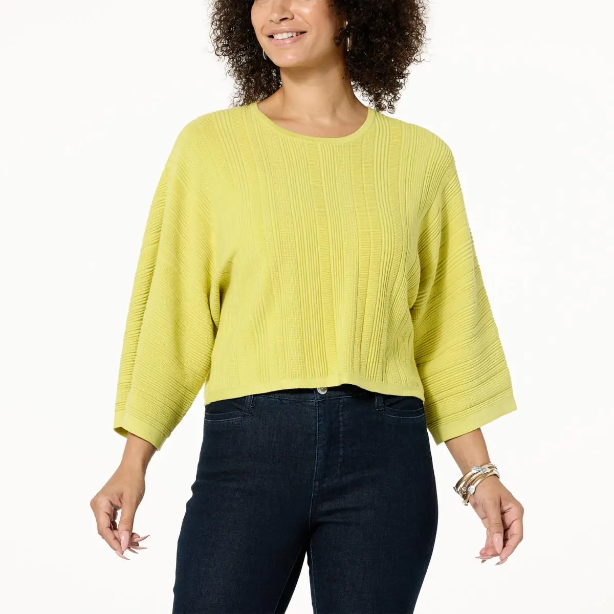 WynneLayers Jersey Ottoman Popover Sweater We love the versatility of this soft sweater knit popover from WynneLayers. Voluminous batwing sleeves, variegated ottoman jersey fabric and a slightly cropped length give it endless layering and styling opportunities.