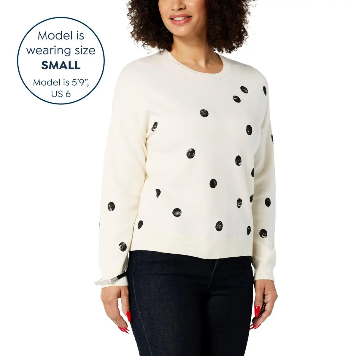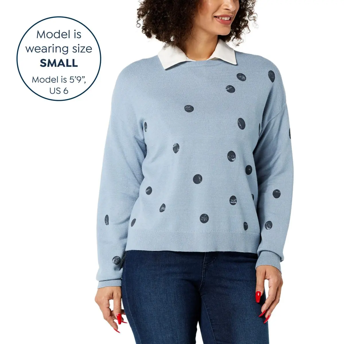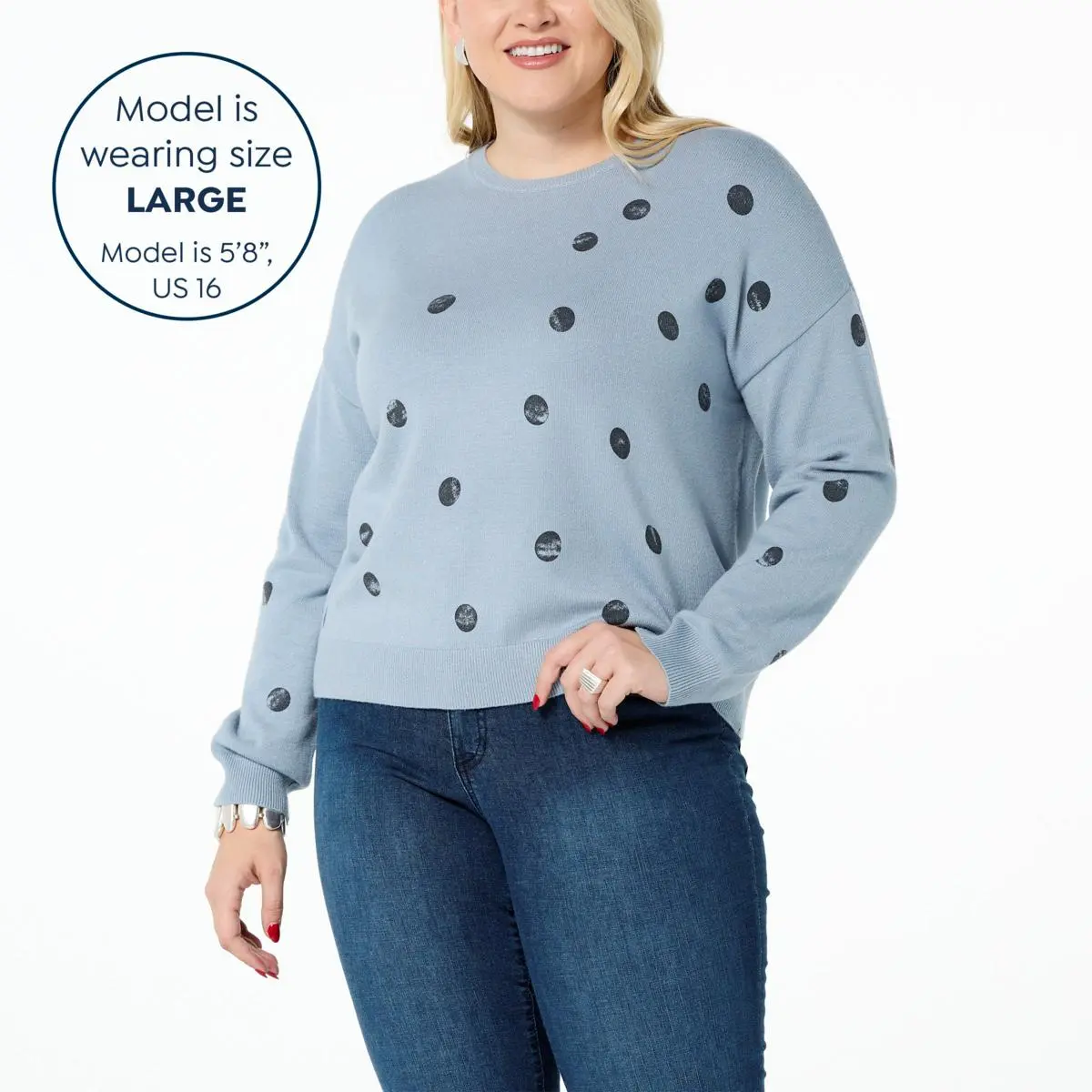 WynneLayers SoftKNIT Distressed Dot Sweater Polka dot power. This soft knit sweater is stylish and light enough to be worn year-round.