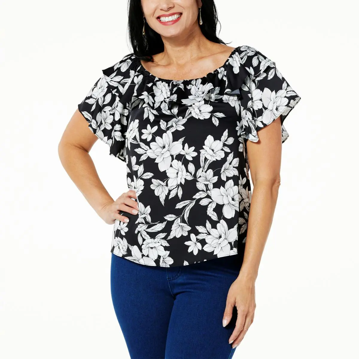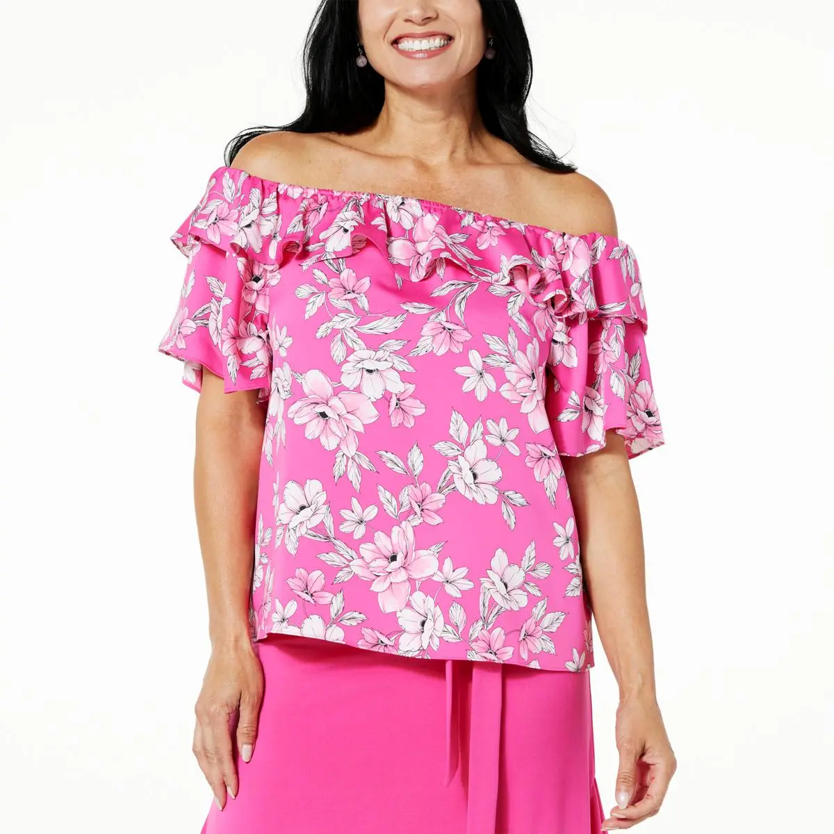 C Wonder by Christian Siriano Off the Shoulder Flounce Blouse Take your look from ordinary to extraordinary with this head-turning, flouncy blouse. What a fashionable way to give someone the cold shoulder.
