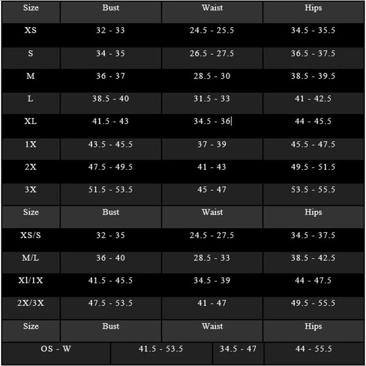 | Size Type | Regular, Plus, X-Small, Small, Medium, Large, X-Large, 1X, 2X, 3X |