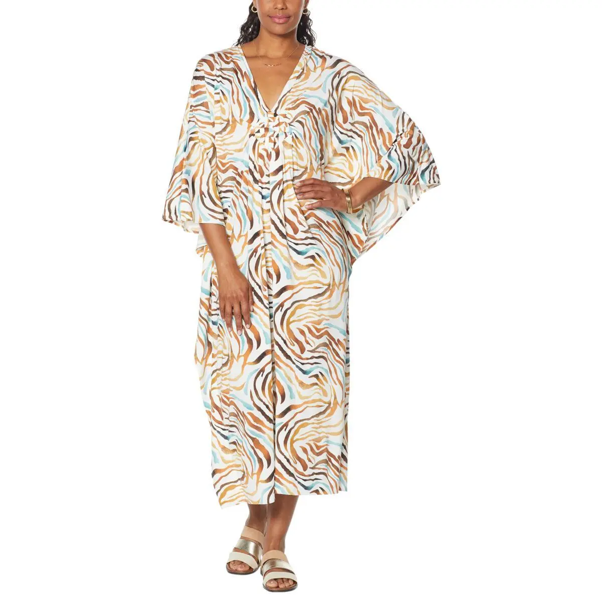 Coldesina Tina Kaftan Maxi Dress Made for the free-spirited woman who likes to feel comfortable, yet look classy, the Tina Kaftan Dress from Coldesina is the perfect cover-up for any summer soiree.