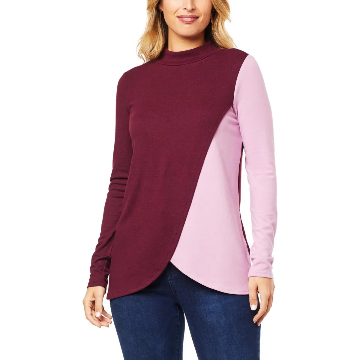 Colleen Lopez Colorblock Mock-Neck Hacci Knit Top   A pop of color makes everything better. Add vibrant flair to your wardrobe when pulling on this cozy-chic top.