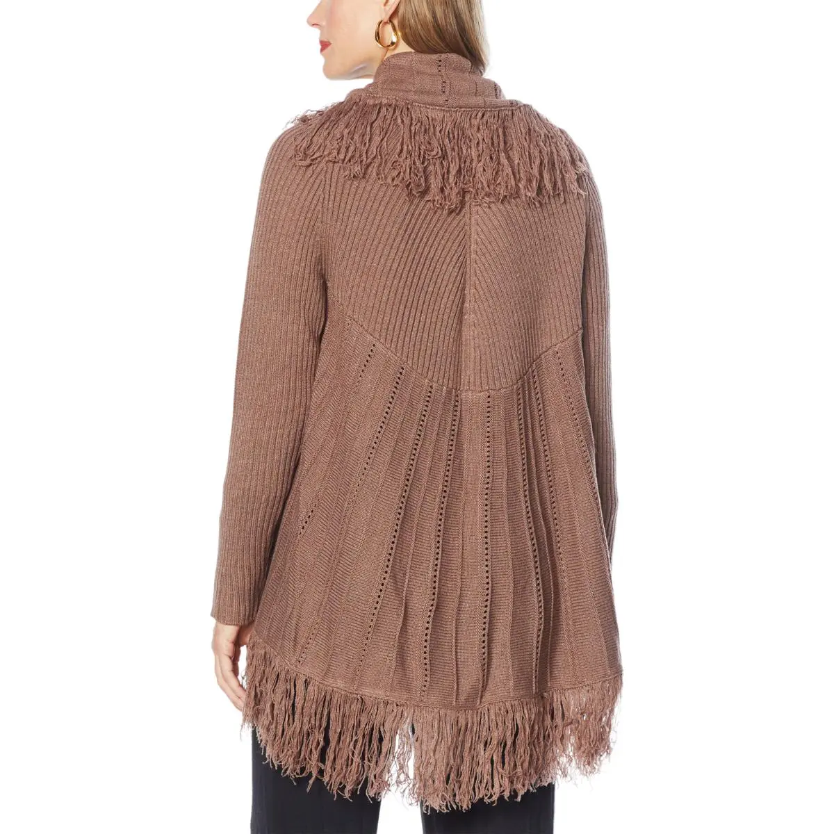 Colleen Lopez Fringe Sweater Cardigan A fringed, full circle shawl collar adds bold style to this must-have, cold-weather piece.