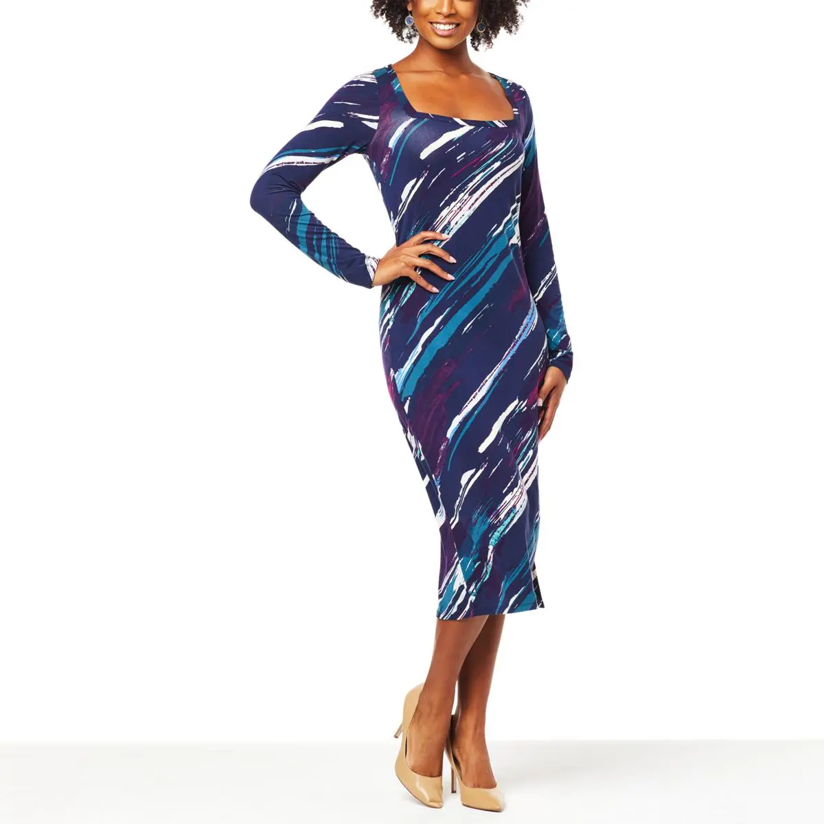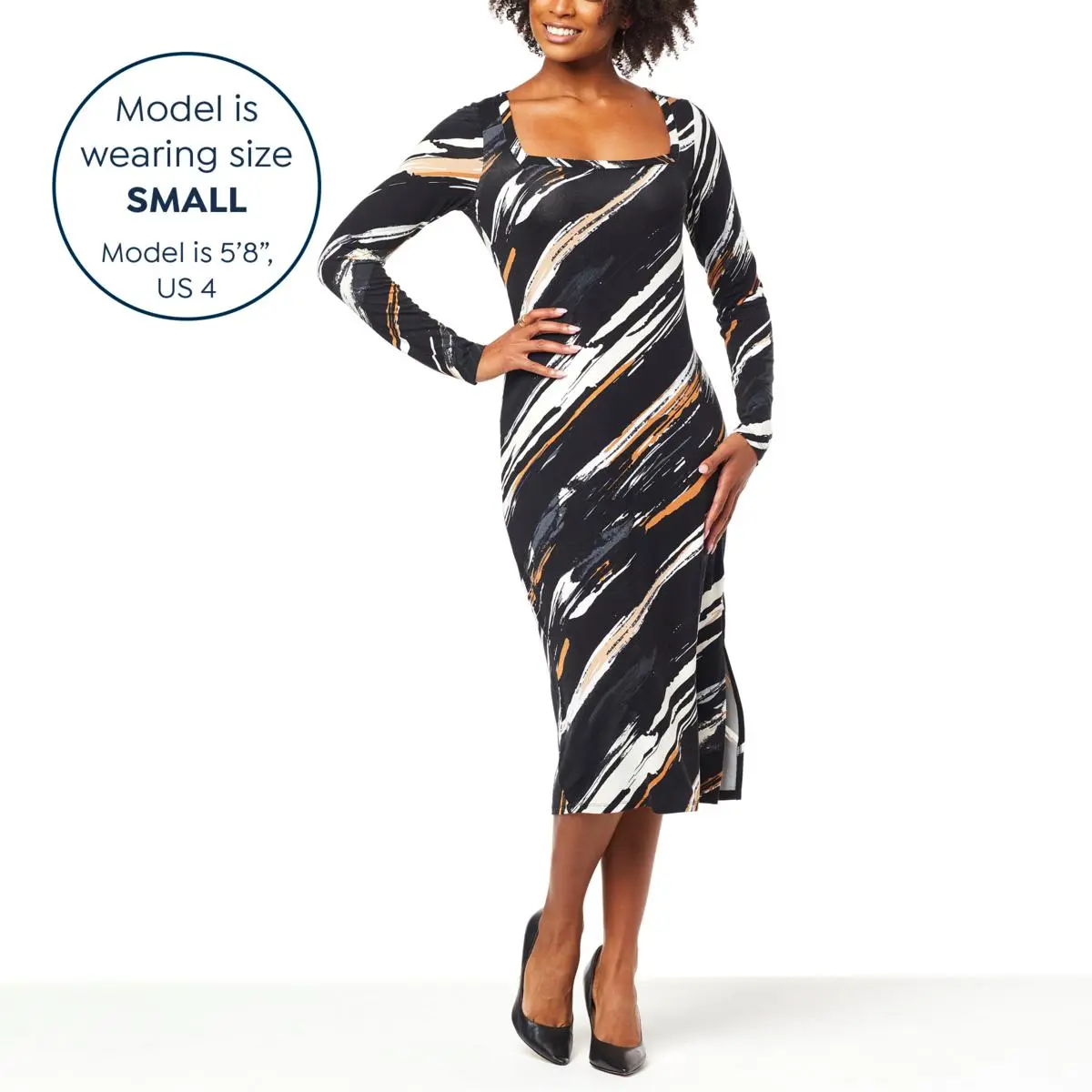 Colleen Lopez Long Sleeve Printed Knit Midi Dress From the flattering silhouette, to the eye-catching print and comfortable fabric — there’s lots to love about this stretch knit midi dress from Colleen Lopez.