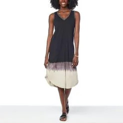 Democracy V-Neck Tie-Dye Knit Tank Dress Love the skin you’re in and show (just a little bit) off in this fun dip tie-dye dress from Democracy.