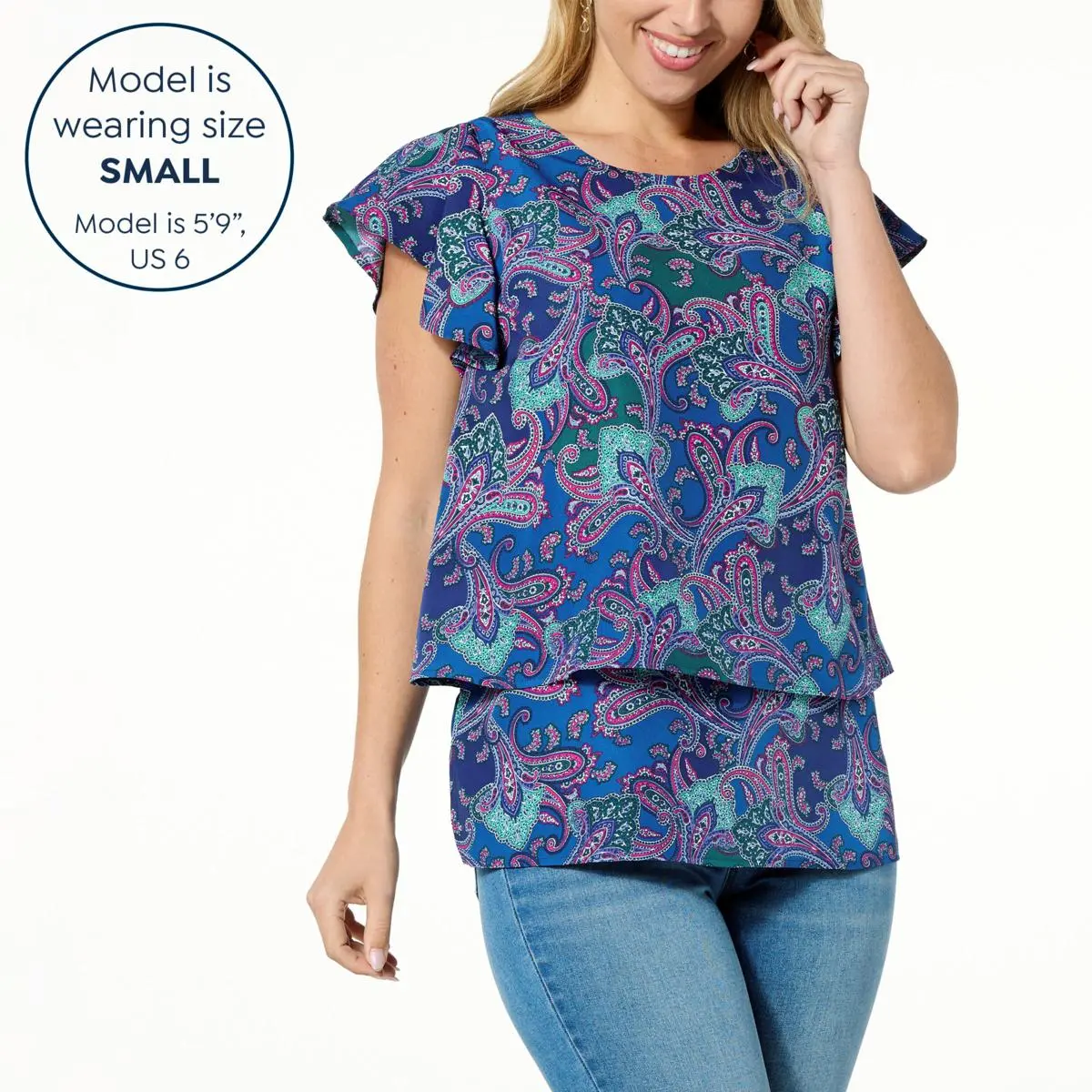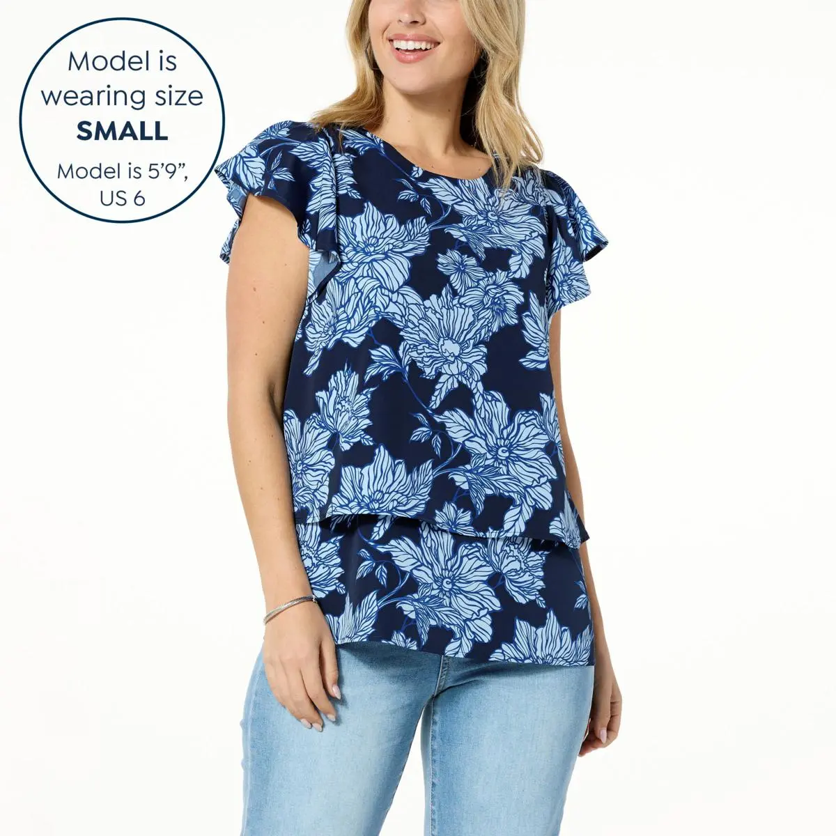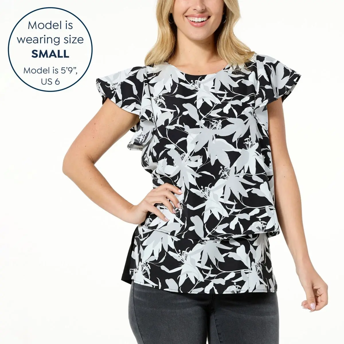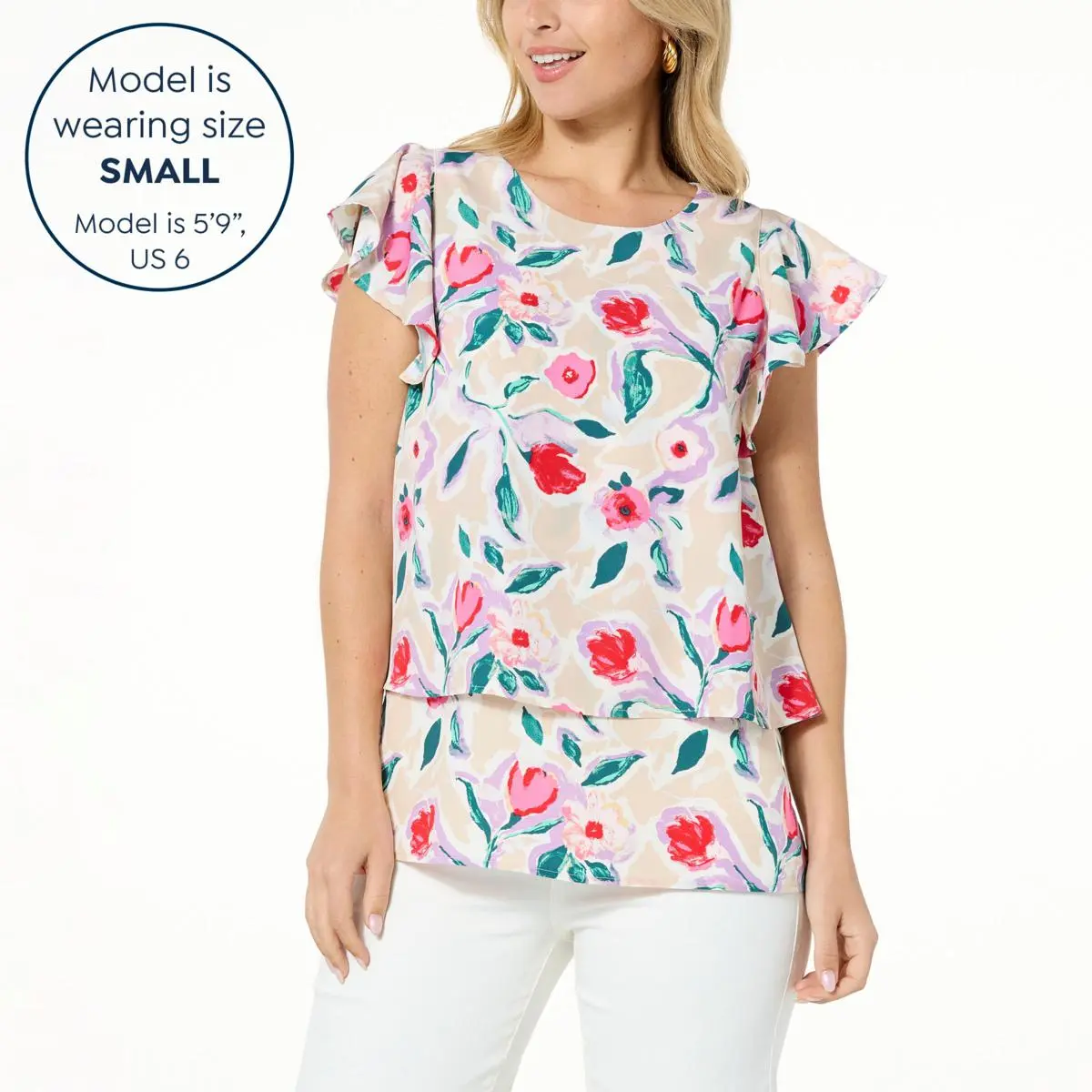 DG2 by Diane Gilman Flutter-Sleeve Printed Easy Top Diane’s signature easy tank now comes with sleeves … pretty, printed flutter sleeves. Same flattering, dual-layer design but with a touch of arm coverage for all-season wear.