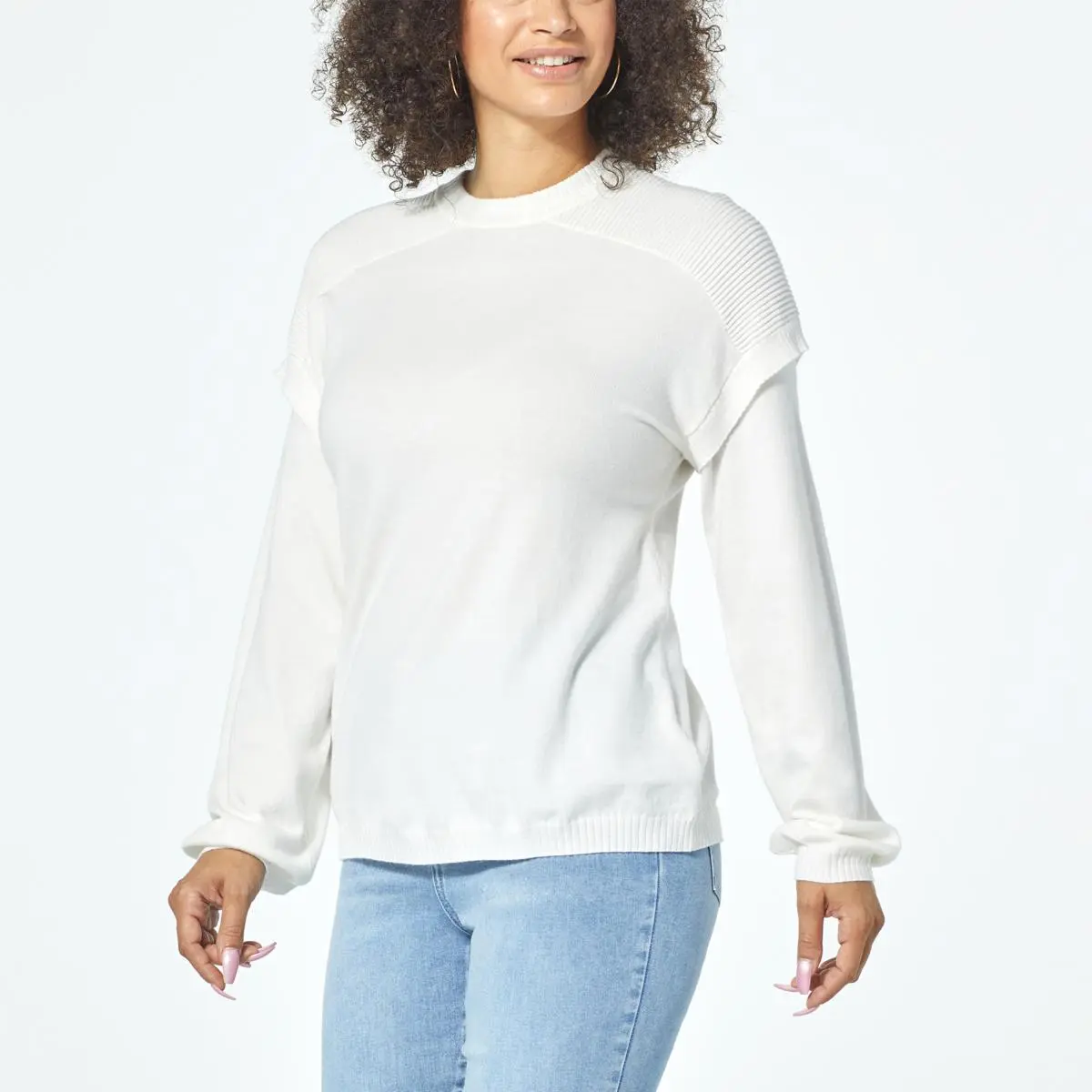 DG2 by Diane Gilman SoftEase Knit Ottoman Stitch Shoulder Sweater Cozy up in the luxe softness of this Diane Gilman sweater distinguished by ottoman stitching and a layered-look sleeve.