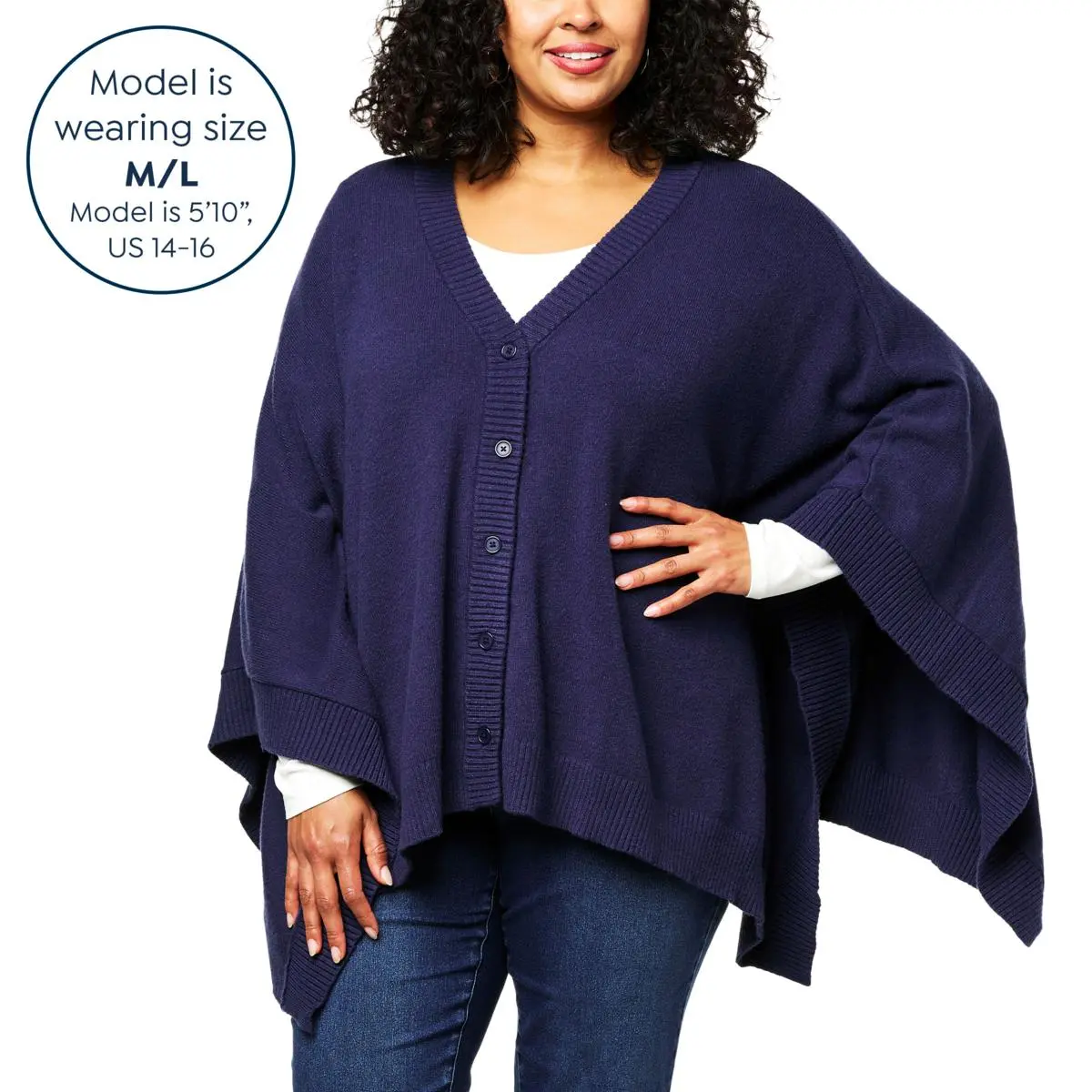 DG2 by Diane Gilman SoftEase Knit Poncho Sweater Cardigan The super-soft touch of this SoftEase sweater knit cardigan feels like cashmere without the hefty price tag. With an oversized poncho-style silhouette, buttoned placket and 3/4-length sleeve-like drape, it’s the perfect layering piece to add to your year-round wardrobe.