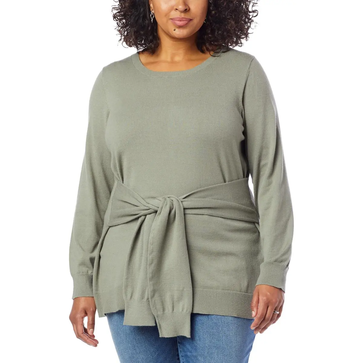 DG2 by Diane Gilman Tie-Front Fully Fashioned Sweater Remember when the absolute, must-have accessory was a flannel shirt or comfy sweatshirt tied around your waist? With a slight nod to the 90’s trend, this tie-front sweater upgrades the look with a one-piece design that creates the layered look with a slim-and-trim, cinched waistline.