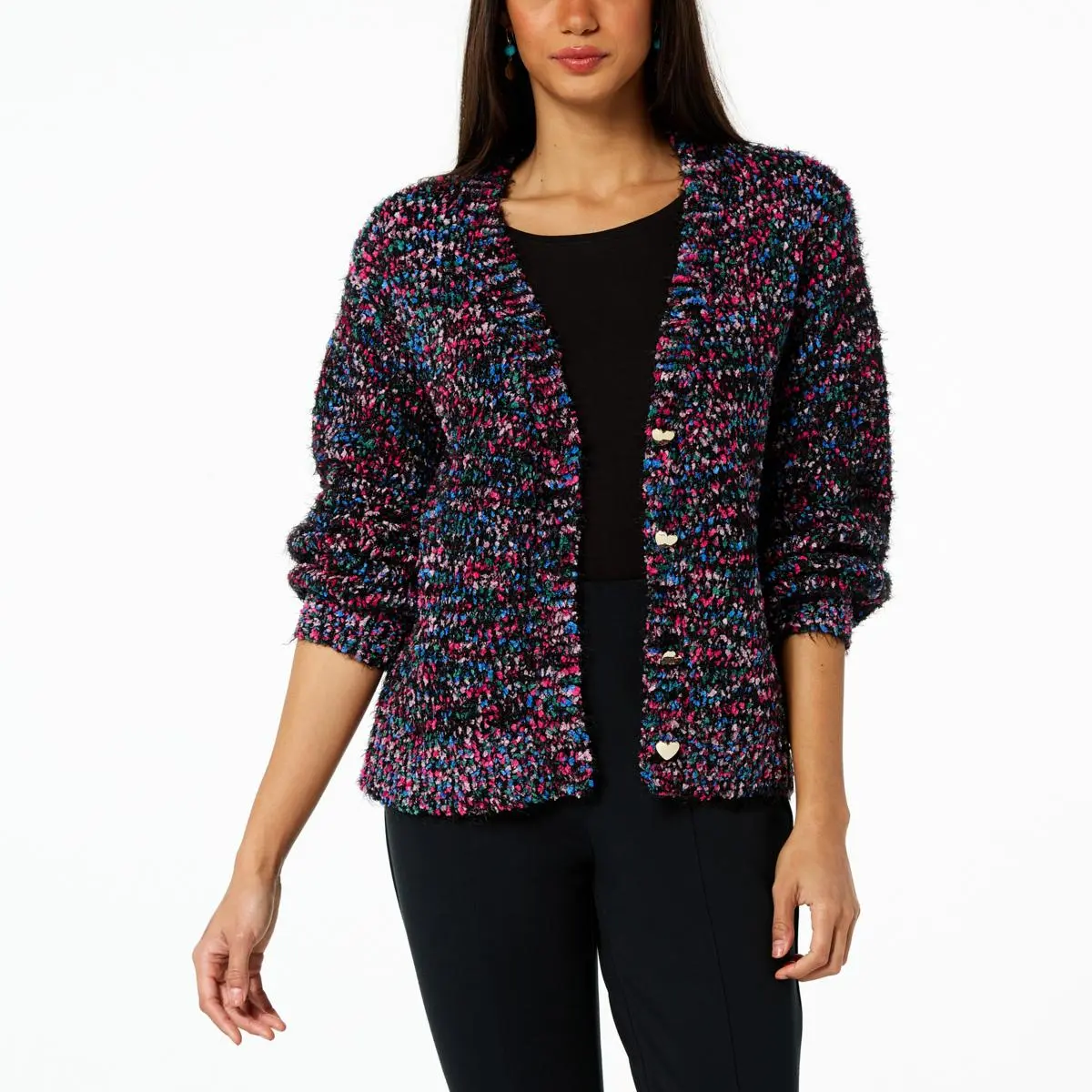 G by Giuliana Confetti Sweater Knit Cardigan Don’t just be at the party… be the party in this fabulously fun confetti sweater knit cardigan from G by Giuliana.