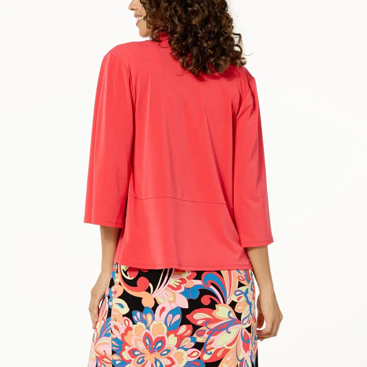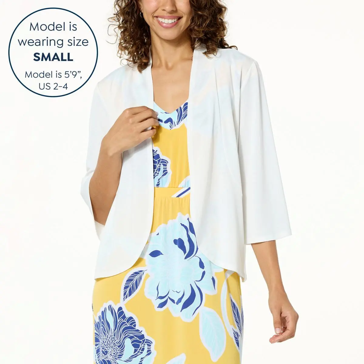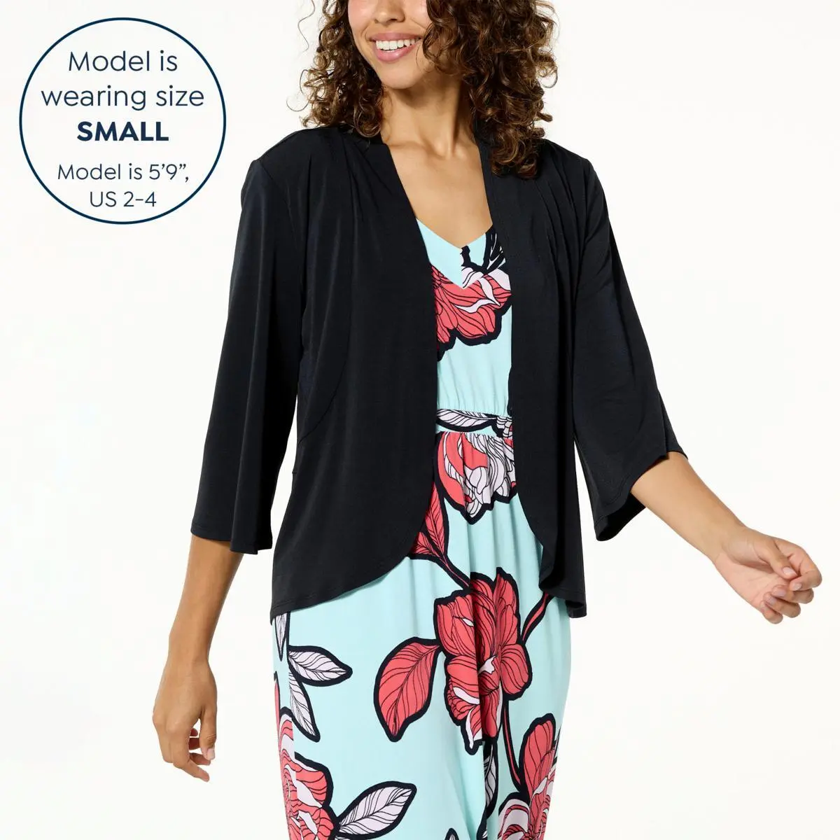 IMAN Global Chic 3/4-Sleeve Open Front Knit Cardigan Add a layer of luxury with our classic, open-front cardigan from Iman. Â