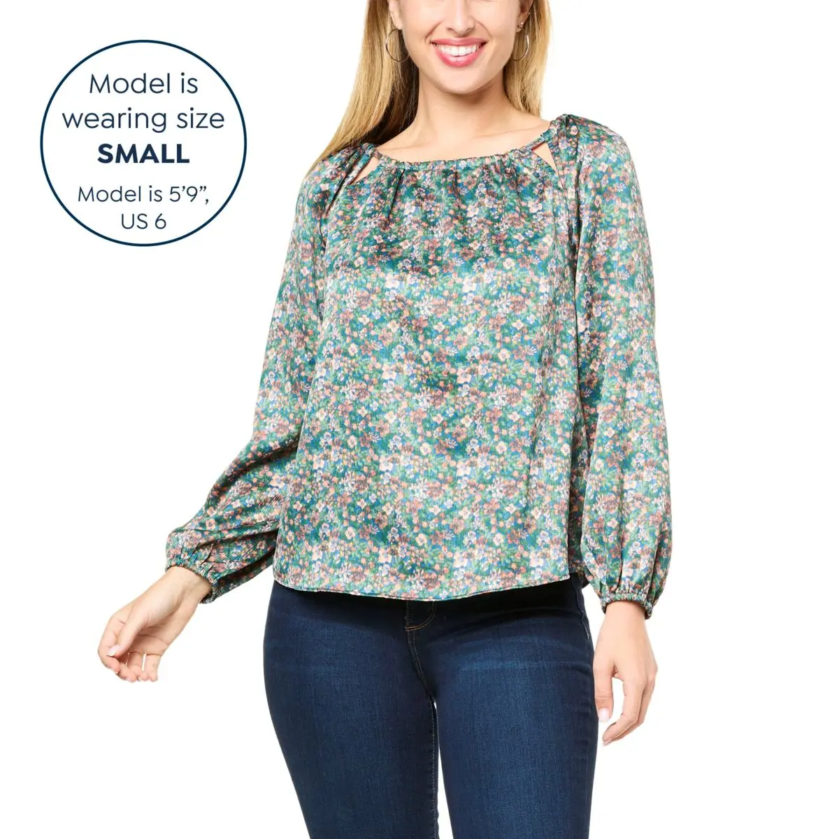 Jessica Simpson Layla Printed Satin Peasant Top Who wants to be a princess if peasants get to dress like this? This printed, peasant-style top from Jessica Simpson features luxe satin fabric and adjustable cutout details that will have you looking like royalty (or their fashionably dressed subjects) from workday to weekend.