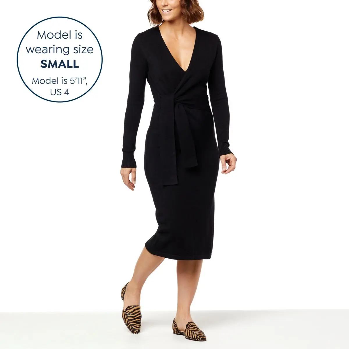 Laila Ali Faux Wrap Sweater Dress Even casual days can be glamorous when you wrap yourself in this pretty dress from Laila Ali. The soft, sweater knit fabric keeps you nice and warm, even on the chilliest days, without sacrificing style.