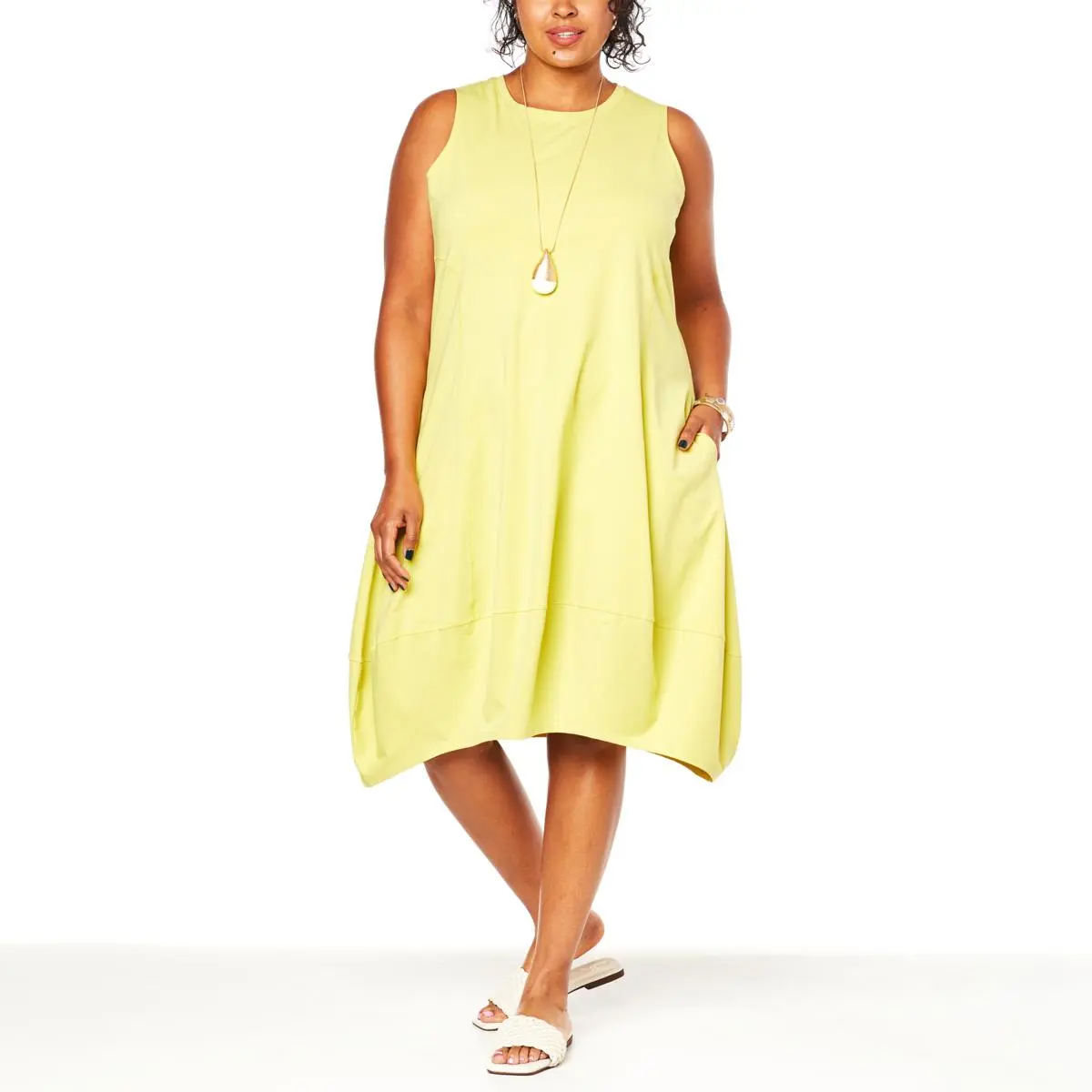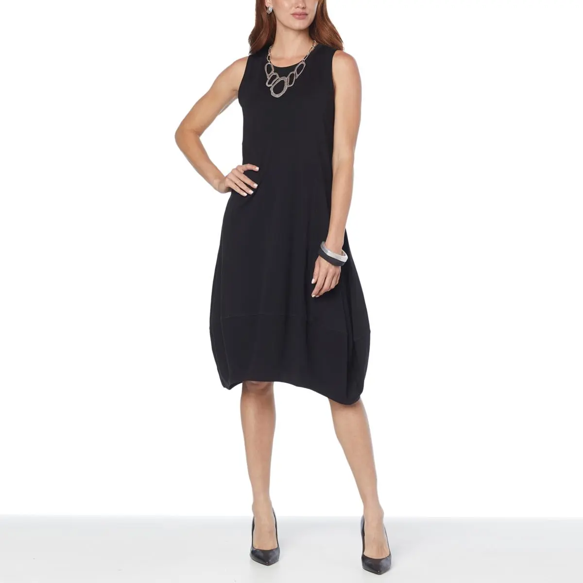 MarlaWynne Sleeveless Lantern Hem Balloon Dress From desk to dinner, this classic cotton jersey knit dress features a uniquely stylish balloon silhouette and convenient side seam pockets.