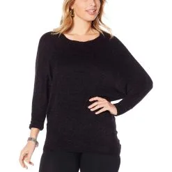 Nina Leonard 3/4-Sleeve Dolman Tunic Dolman sleeves and a lightweight knit give this dolman tunic a figure-flattering shape.