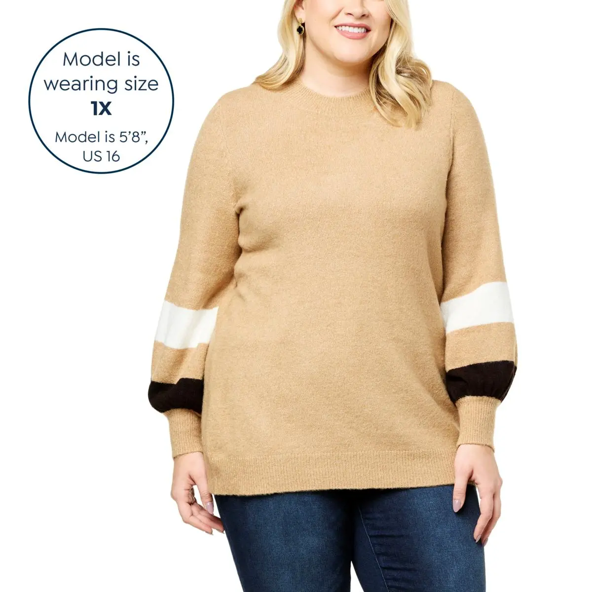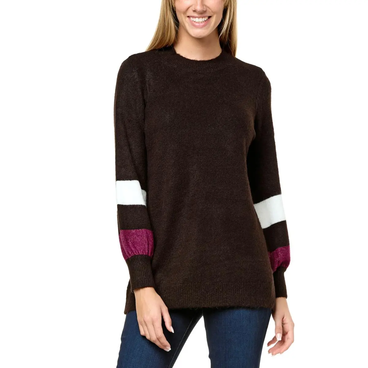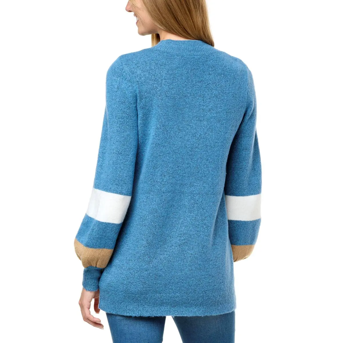 Nina Leonard Balloon Sleeve Pullover Sweater with Stripe Detail This cozy-chic pullover sweater, designed with dramatic striped balloon sleeves, is sure to make a fabulous fashion statement.