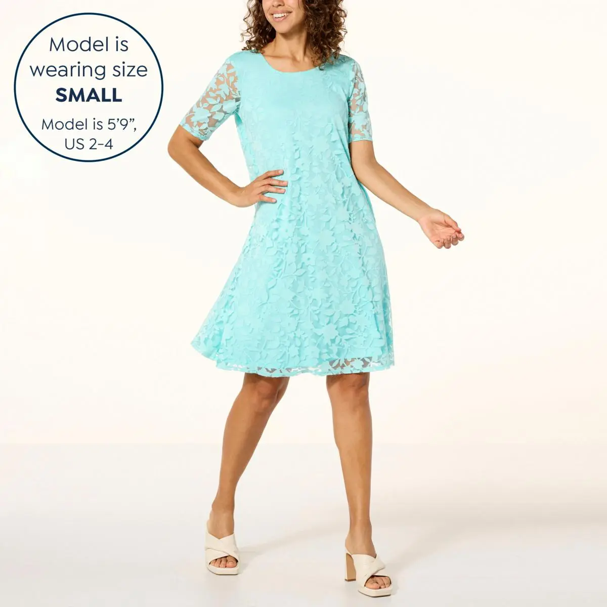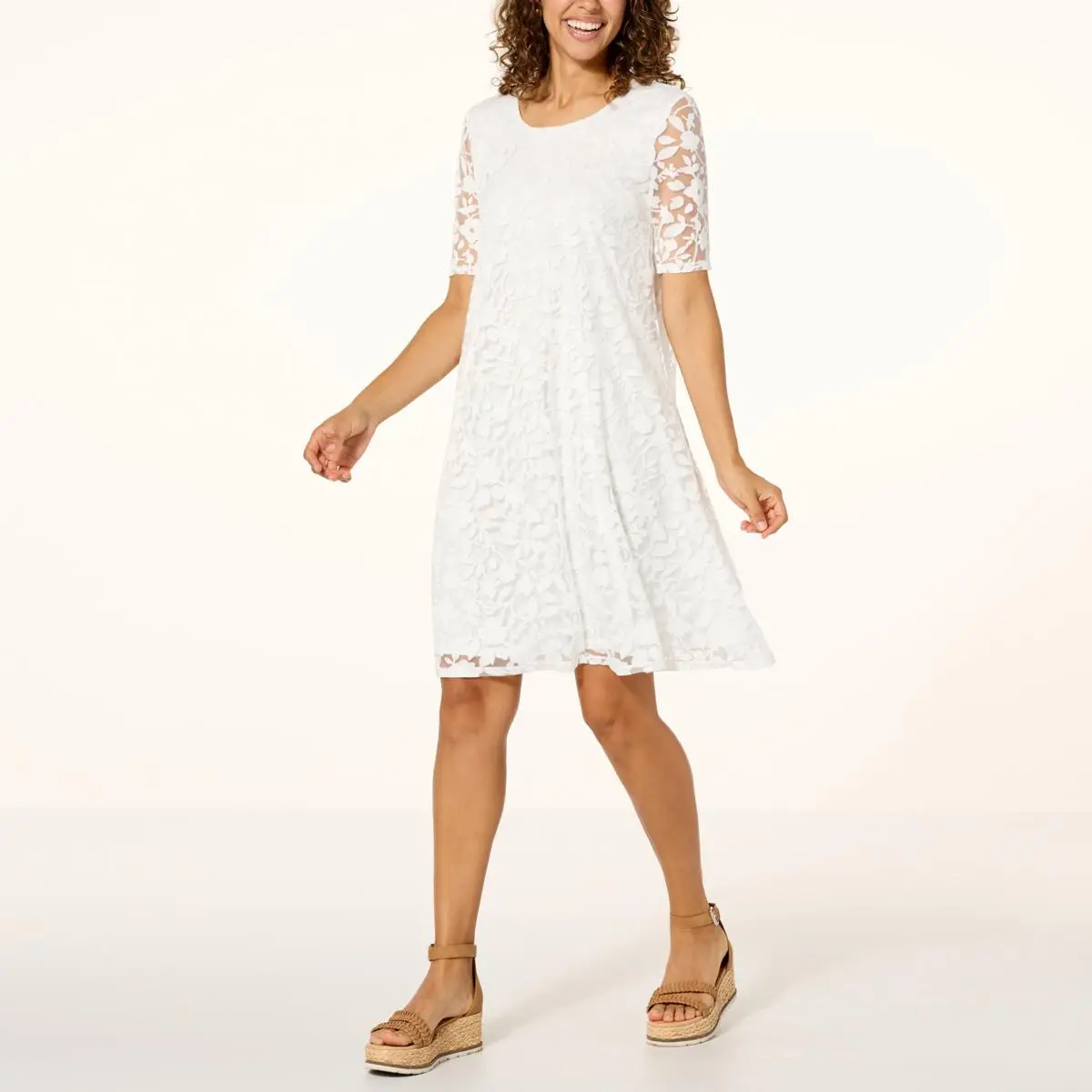 Nina Leonard Novelty Burnout Dress This effortless dress stays the stylish course throughout the seasons and perfect for any occasion.