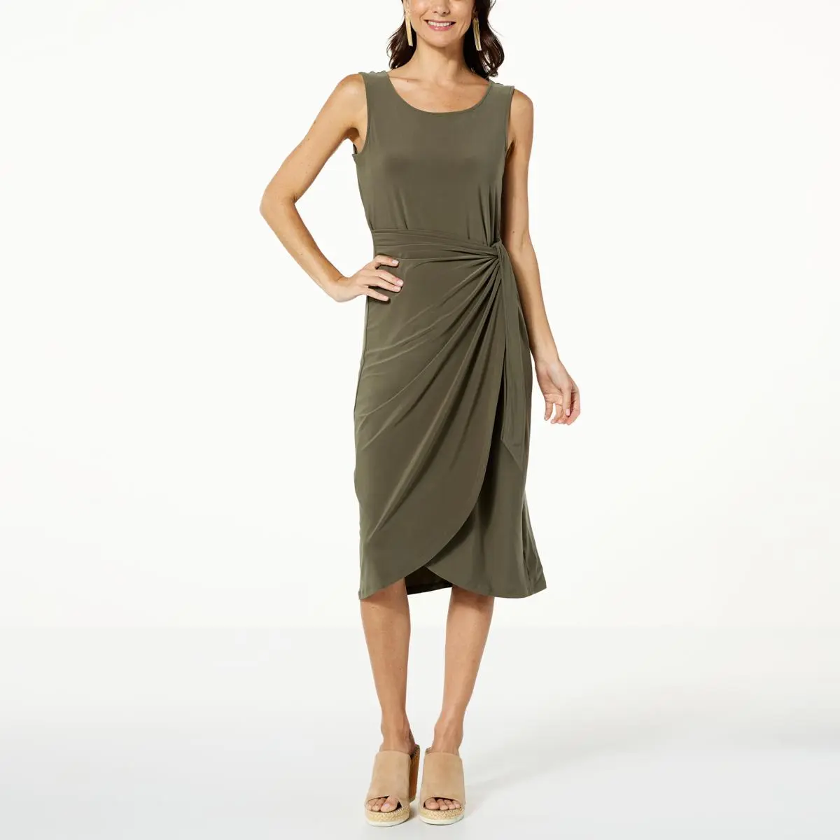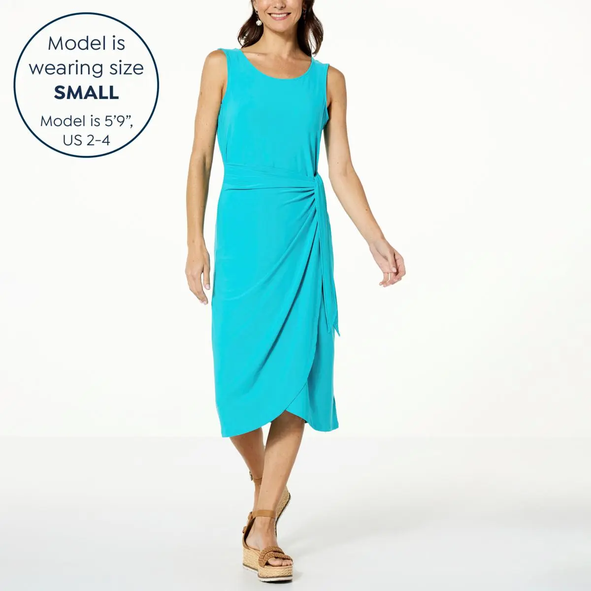 Nina Leonard Sleeveless Wrap Waist Midi Dress With a flattering wrap-style silhouette, this sleeveless midi dress creates the perfect polished look every time.