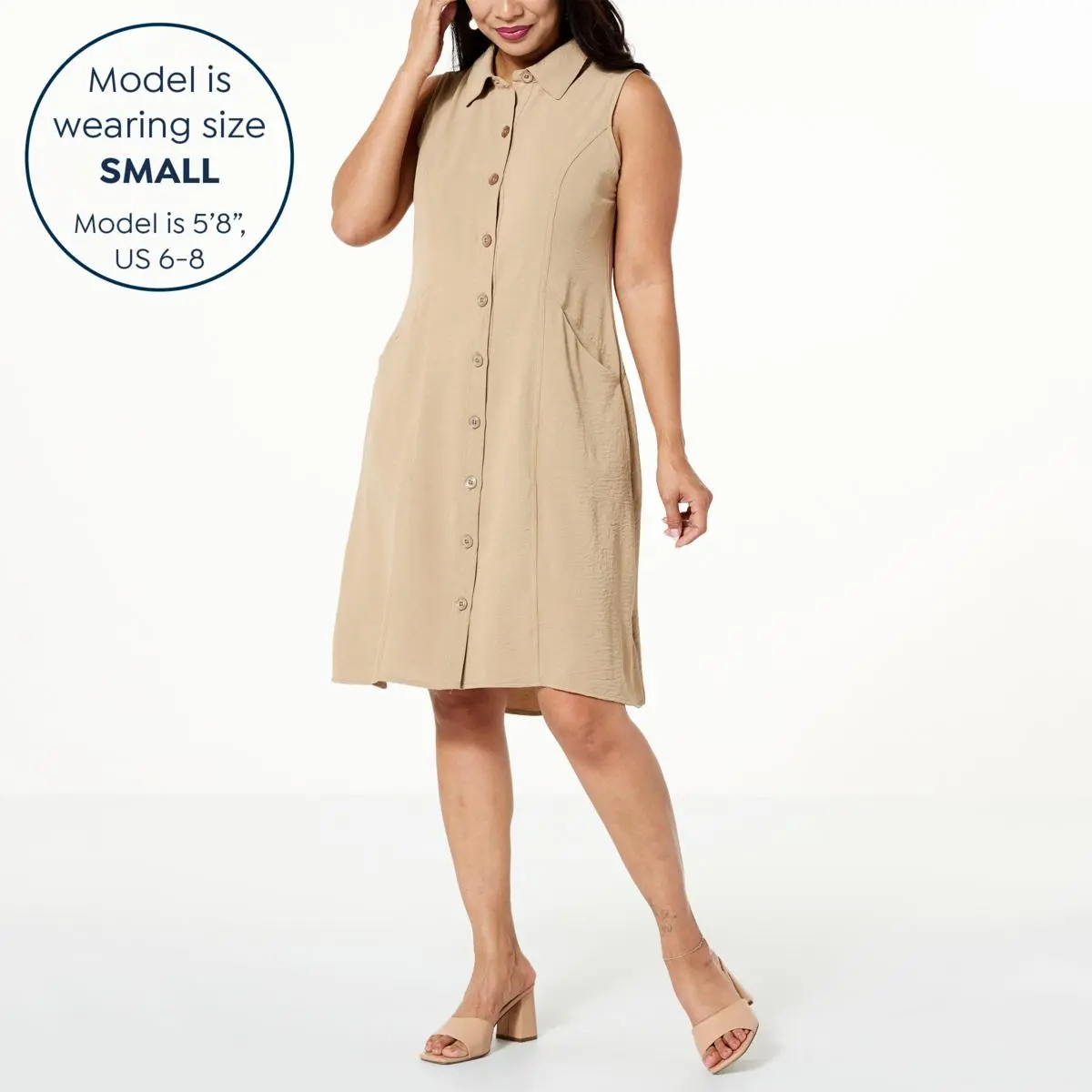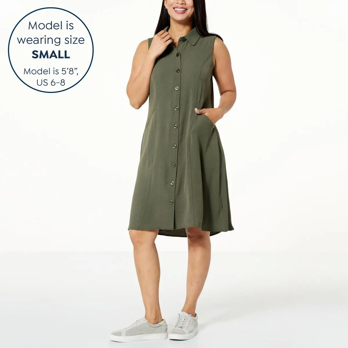 | Style | Trapeze-style shirt dress |