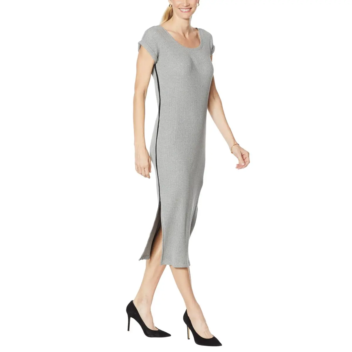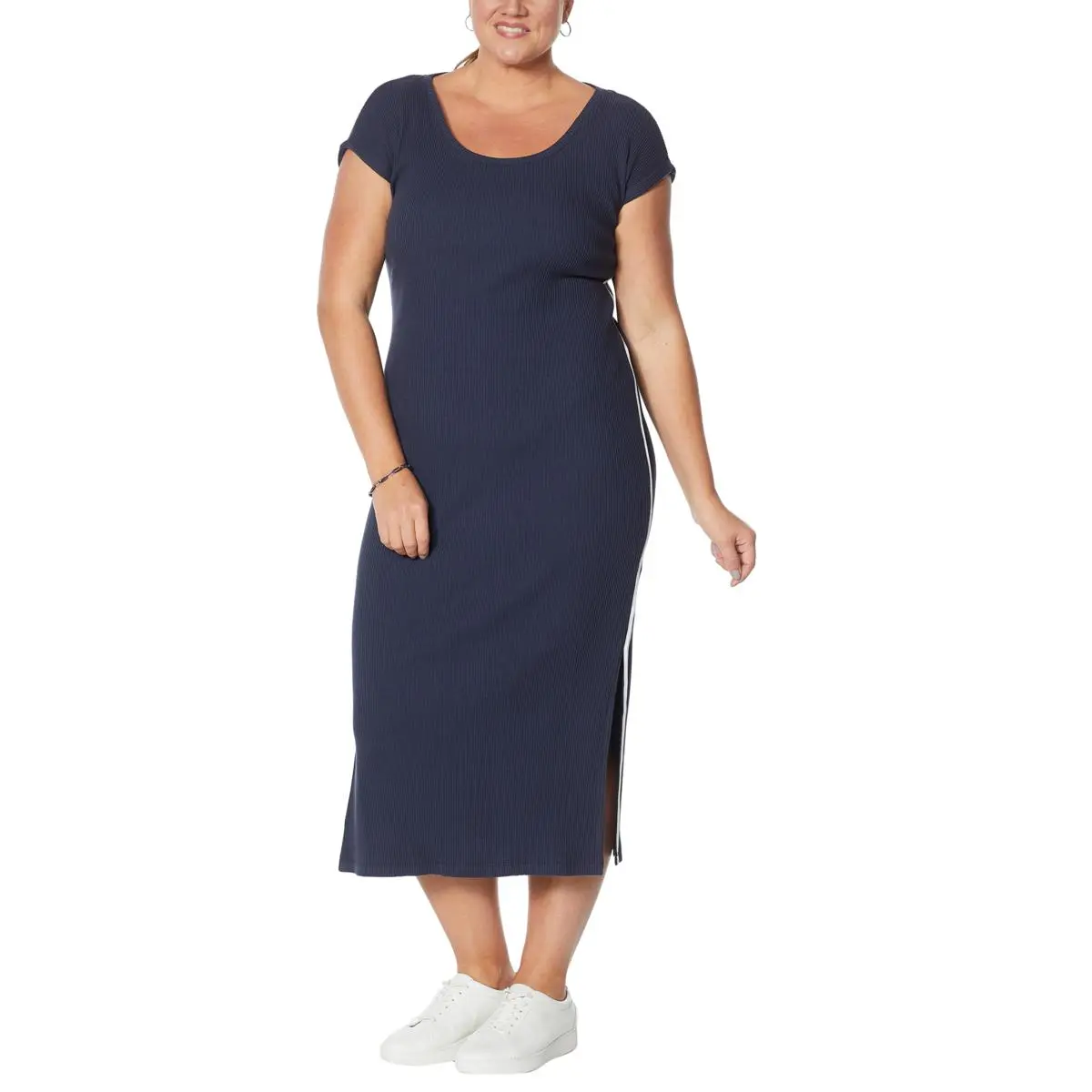Skinnygirl Boze Midi Dress with Side Stripe A contrasting stripe highlights this side-slit midi dress that can look as sporty or dressy as you like.
