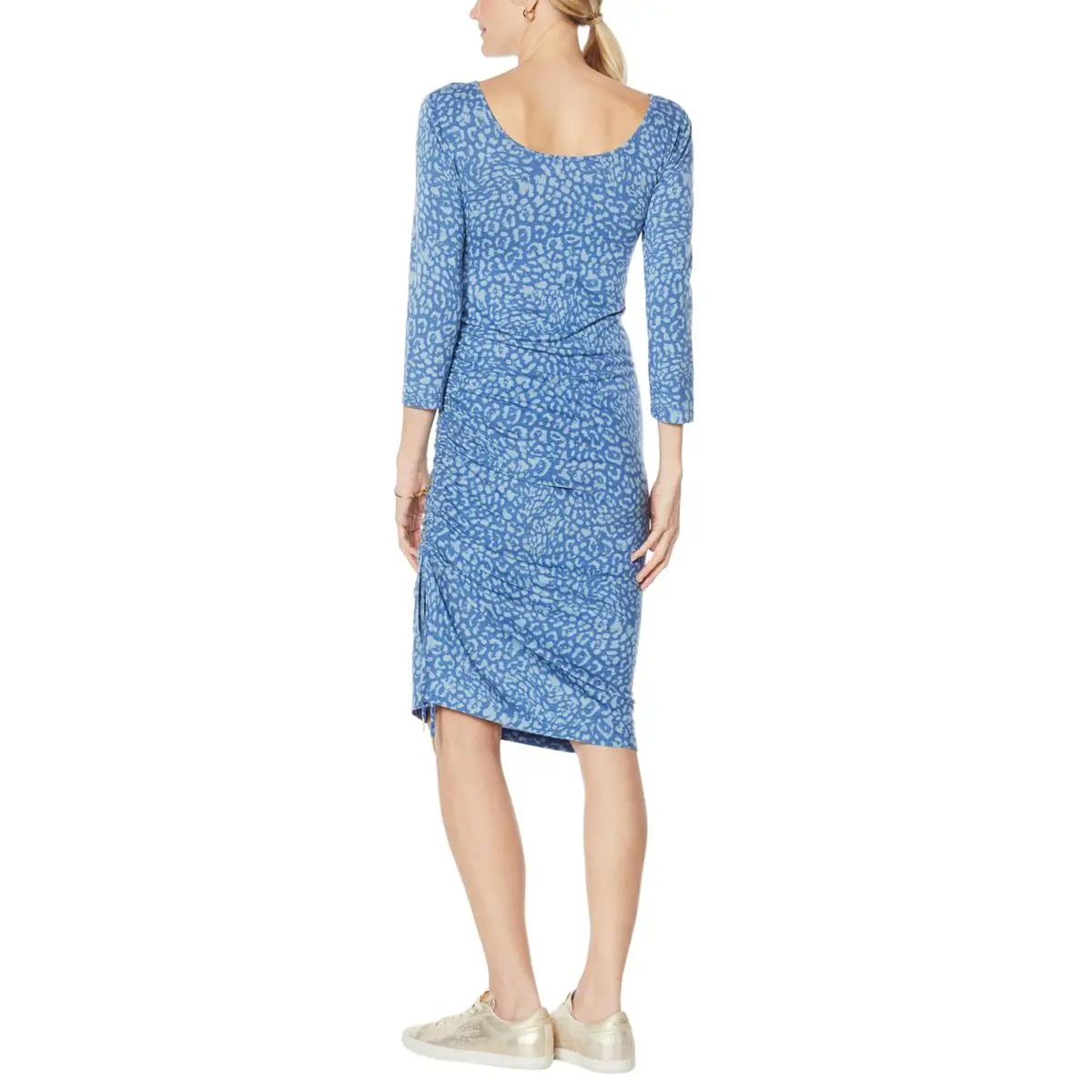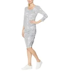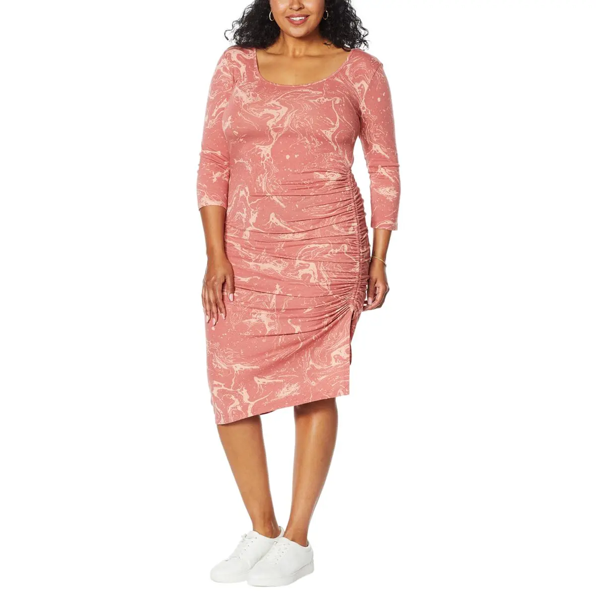 Skinnygirl Connie Ruched Midi Dress Adjustable ruching brings the wow factor to this feminine and flattering dress featuring a scoop neckline and 3/4 sleeves.