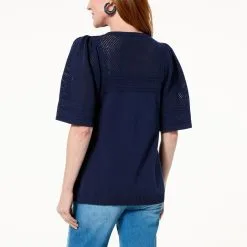 “As Is” DG2 By Diane Gilman Organic Cotton Crocheted Yoke Sweater