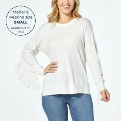 “As Is” DG2 By Diane Gilman SoftEase Knit Crew-Neck Fringe Sweater