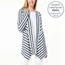 “As Is” DG2 By Diane Gilman Striped French Terry Waterfall Cardigan