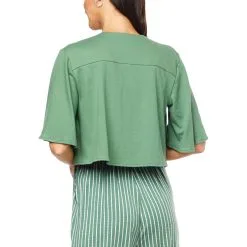“As Is” Democracy 3/4 Ruched Sleeve Woven Ruffled Edge Top