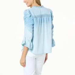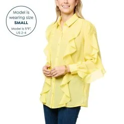 “As Is” Colleen Lopez Ruffled Chiffon Button-Down Shirt