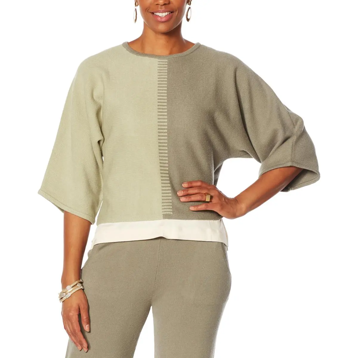 WynneLayers Colorblocked Intarsia Knit Popover Sweater Cuddle-worthy softness and a unique, colorblocked intarsia pattern gives this cropped popover sweater a spot at the front of your cold-weather wardrobe.